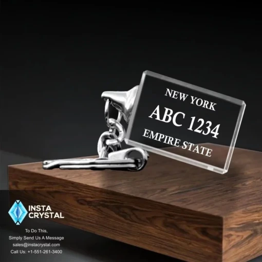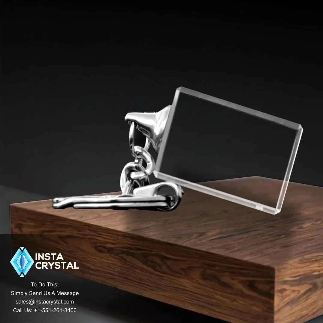 A Crystal Keychain customized with your image, logo or text. 1.2″ H x 0.8″ W x 0.6″ D