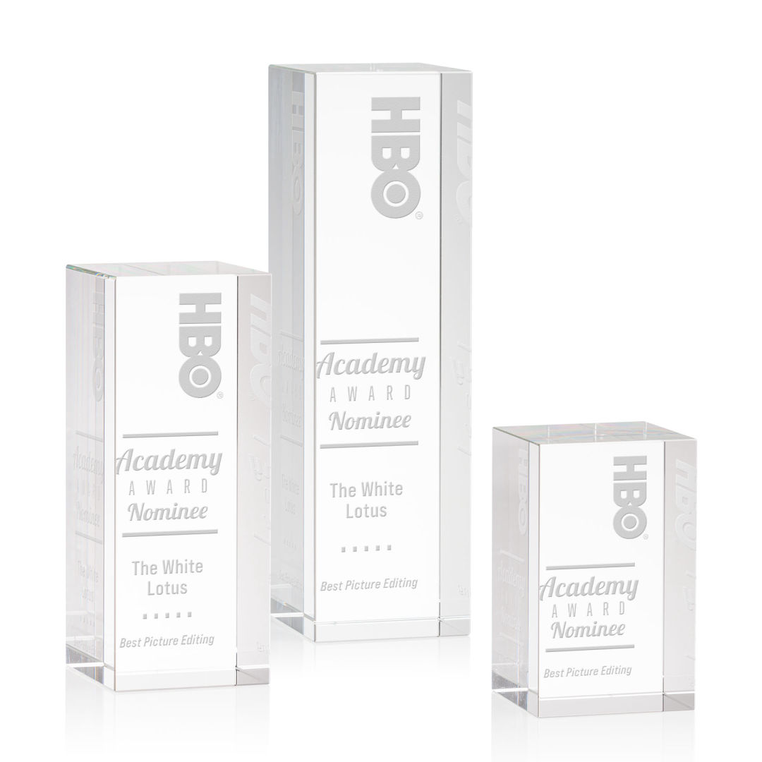 The Dakota is a squared block of pure optical crystal, a simple, monolithic award with a sense of weight and permanence. Colorfill optional. 2.25″ W x 4.0″ H x 2.25″ D
