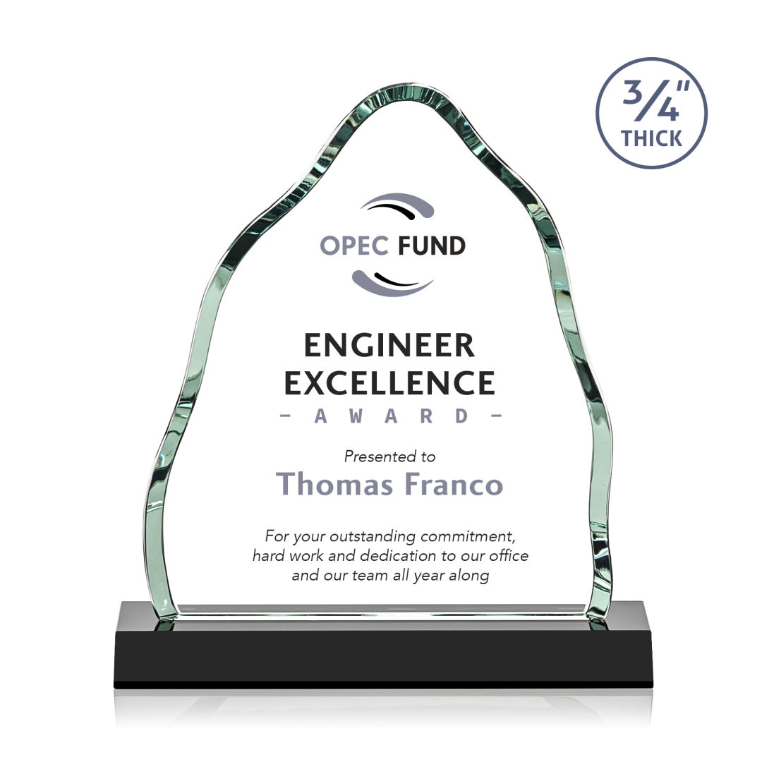 This illustrious Starfire Crystal award stands upright on an elegant Ruby base and is adorned with a Silver star for optimal view. The perfect recognition piece for a star performer. Also available with Gold star. 3.0″ W x 5.0″ H x 0.375″ D