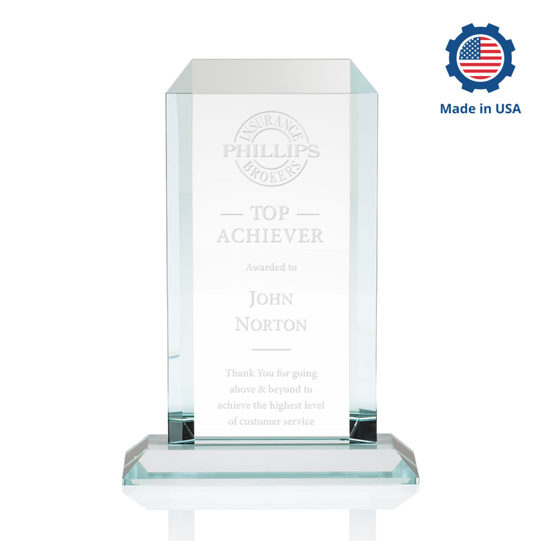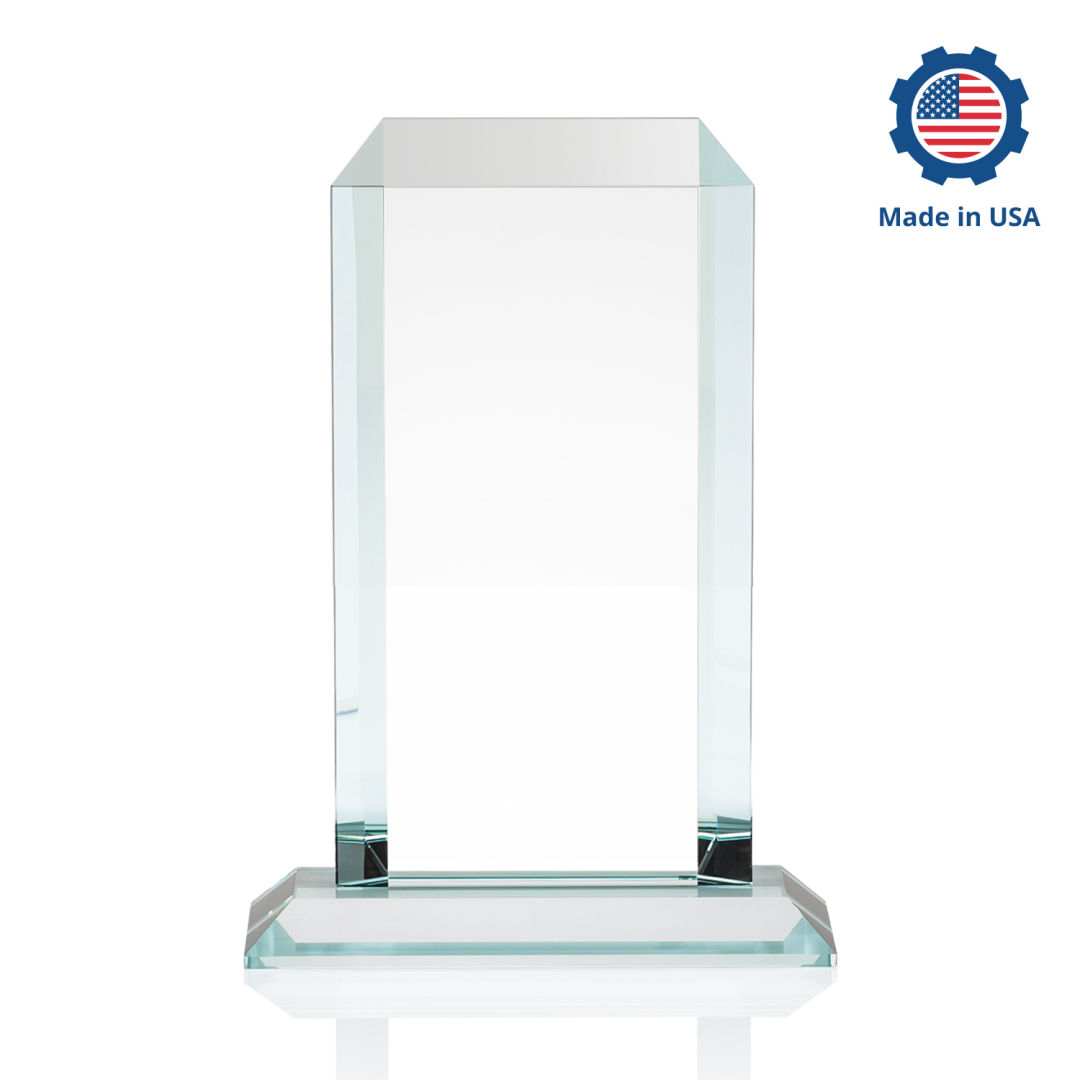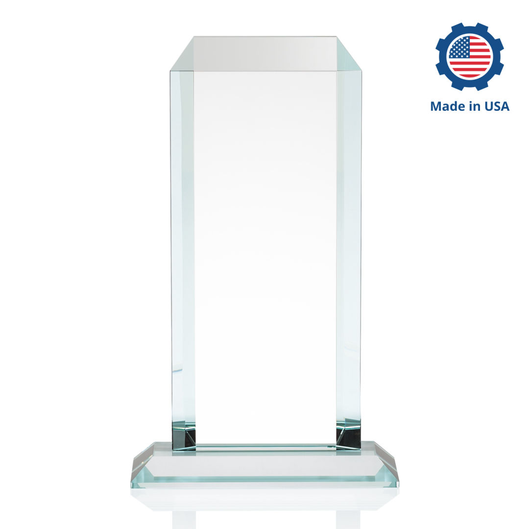The Dalton Starfire Crystal Award features a thick 3/4″ tower with mitered edges all around that create a sparkling frame for your message of recognition. Available with your choice of 9 distinct and vivid colored bases, the Dalton award radiates light throughout the room and showcases your special achievement. Manufactured and Decorated in the USA. 7.0″ W x 7.75″ H x 3.0″ D