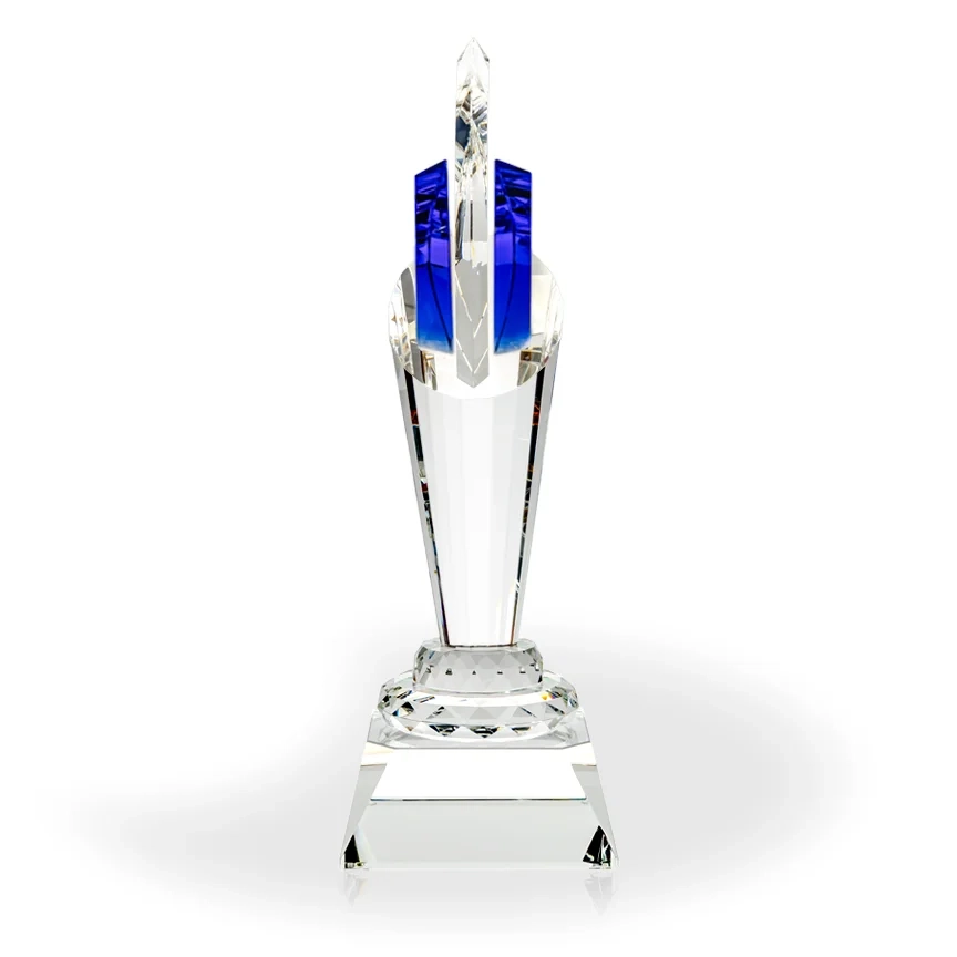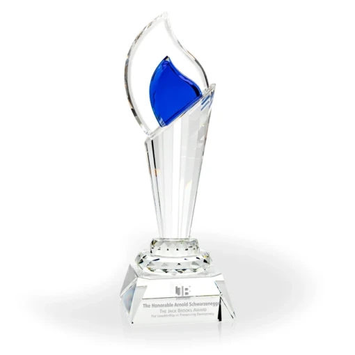 The Demeter Crystal Torch Award was designed with an Olympic Torch in mind and stands almost 14″ tall, making it an impressive award to recognize top performers and lifetime achievements. The column of the award is a uniquely shaped component with over 20 facets, allowing it to capture the light from any angle. The flame is made from 3 components: 1 large clear flame and 2 smaller blue crystal components. The base of the award can be engraved with your logo and award text. 13 3/4″ H x 4 3/4″ W x 4 1/2″ D