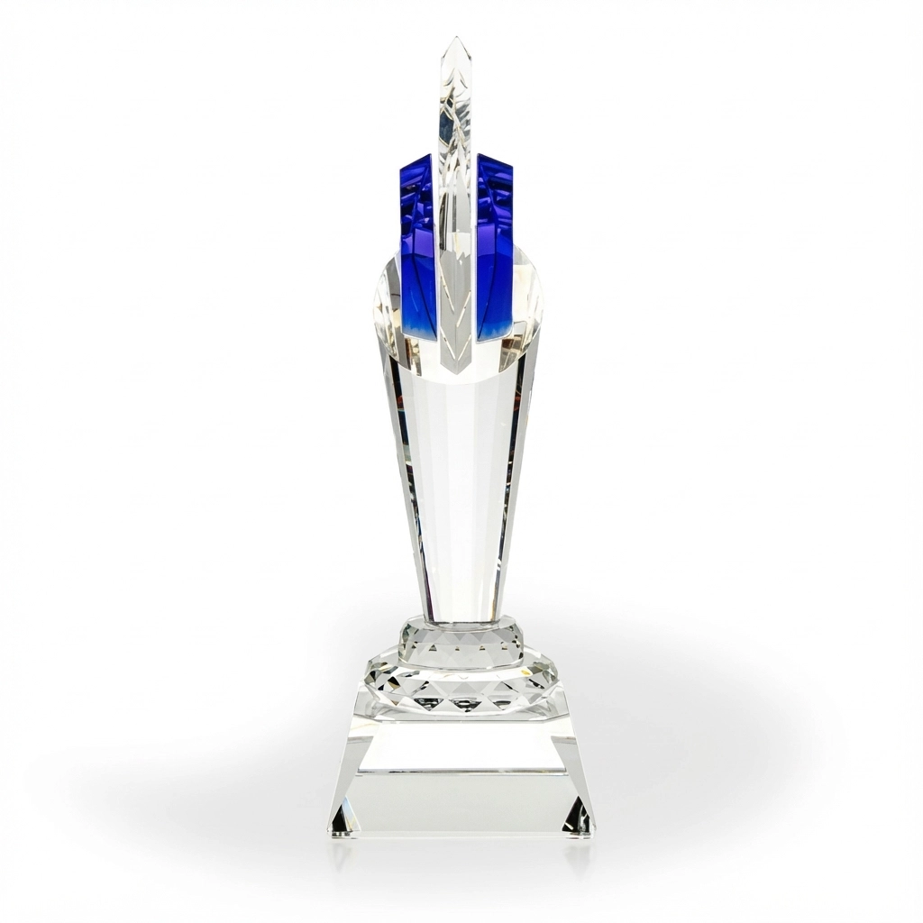 The Demeter Crystal Torch Award was designed with an Olympic Torch in mind and stands almost 14″ tall, making it an impressive award to recognize top performers and lifetime achievements. The column of the award is a uniquely shaped component with over 20 facets, allowing it to capture the light from any angle. The flame is made from 3 components: 1 large clear flame and 2 smaller orange crystal components. The base of the award can be engraved with your logo and award text. 13 3/4″ H x 4 3/4″ W x 4 1/2″ D