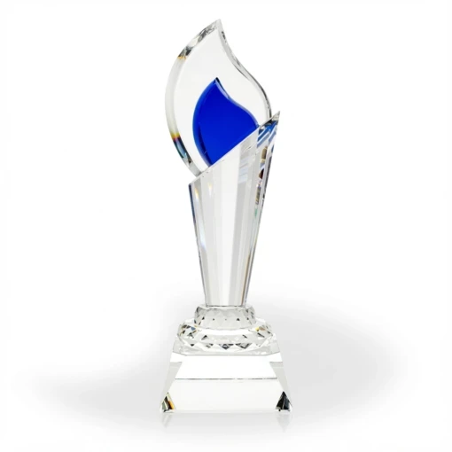 The Demeter Crystal Torch Award was designed with an Olympic Torch in mind and stands almost 14″ tall, making it an impressive award to recognize top performers and lifetime achievements. The column of the award is a uniquely shaped component with over 20 facets, allowing it to capture the light from any angle. The flame is made from 3 components: 1 large clear flame and 2 smaller orange crystal components. The base of the award can be engraved with your logo and award text. 13 3/4″ H x 4 3/4″ W x 4 1/2″ D