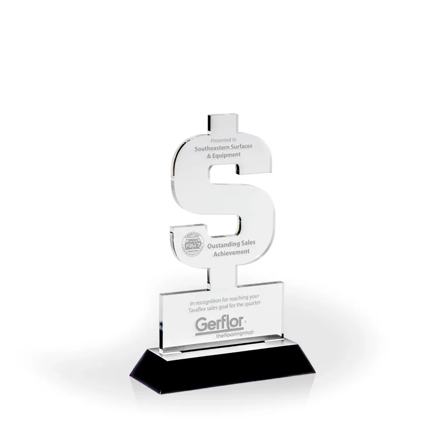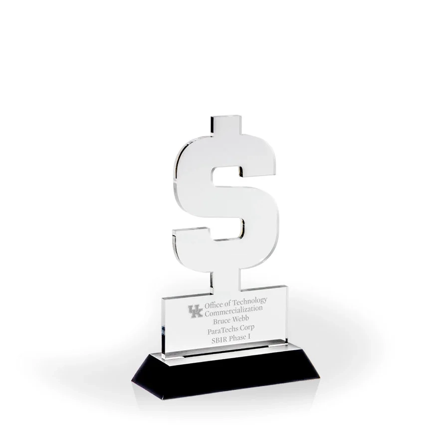 Dollar Sign Award with Black Wood Base – Engraved