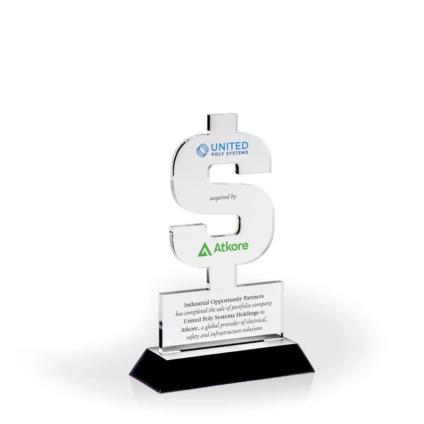 Dollar Sign Award with Black Wood Base – UV Printed