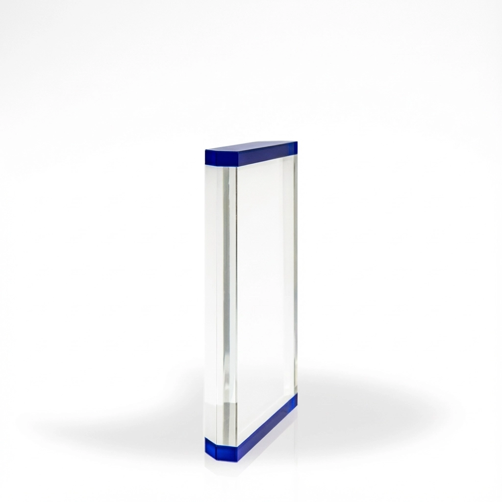 The Dory is an elegant and versatile award. Featured here is the Dory with blue accents at the top and at the base of the award. The clear acrylic front of the award offers plenty of space for adding content and logos. Perfect for customizing with any type of recognition. 8″ H x 6″ W x 1.13″ D