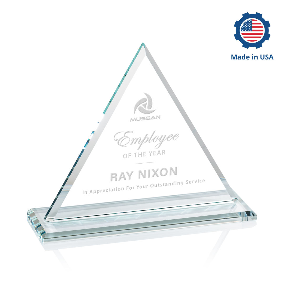 Our extraordinary Starfire triangle award is combined with an optical crystal beveled base, the latest trend in designer glass, to update a classic look with chic style.Manufactured and Decorated in the USA. 7.0″ W x 5.375″ H x 3.0″ D