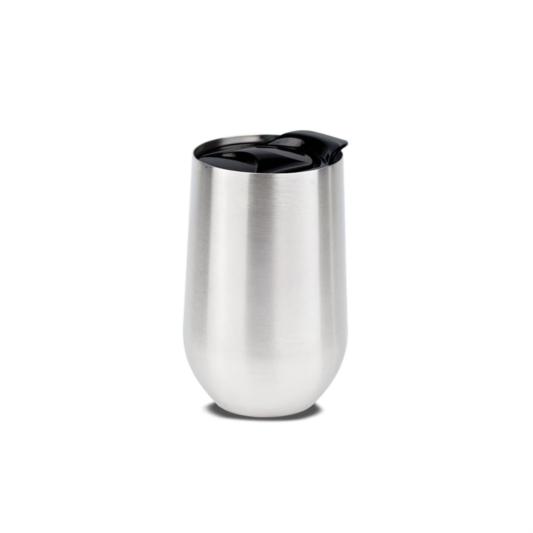 Double wall stainless steel tumbler- Seamless-seal push on thermoplastic lid- Easy slide drink opening and closure- Glazed coloured exterior- Stylish brushed matte finish