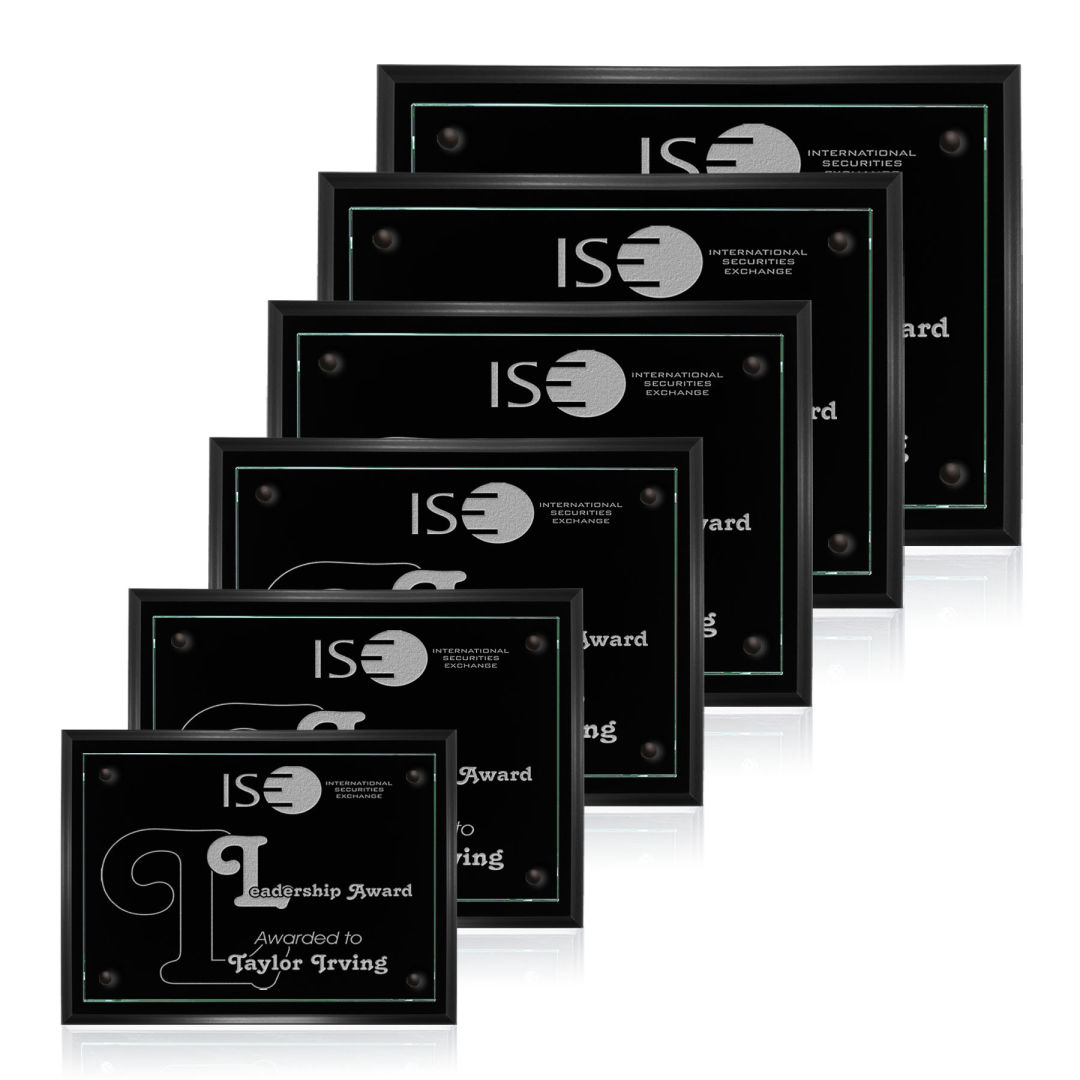 The 7″ X 9″ Dufferin plaque is made from 0.375″ jade glass and a black wood product backing. Also available in 8″ X10″, 9″ X 12″, 10.5″ X 13″, 12″ X 15″ and 16″ x 20″ versions, with rosewood-colored backing and in Starfire glass. Please specify vertical or horizontal format. 7.0″ W x 9.0″ H