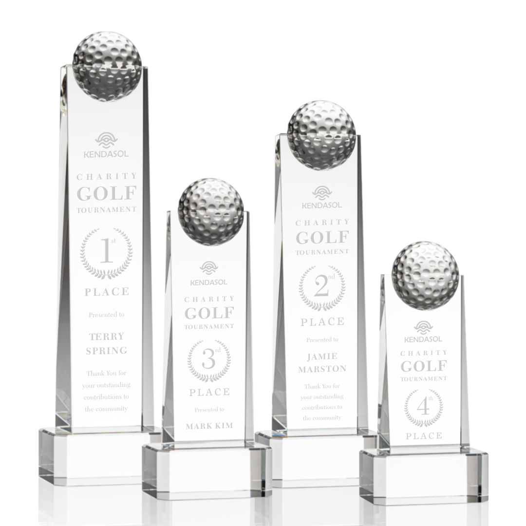 The monumental Dunbar Golf Award features a sparkling domed golf ball perched on top of the magnificent accolade. With a glistening Clear base, this award is perfect to recognize a champion performance. 8.0″ H