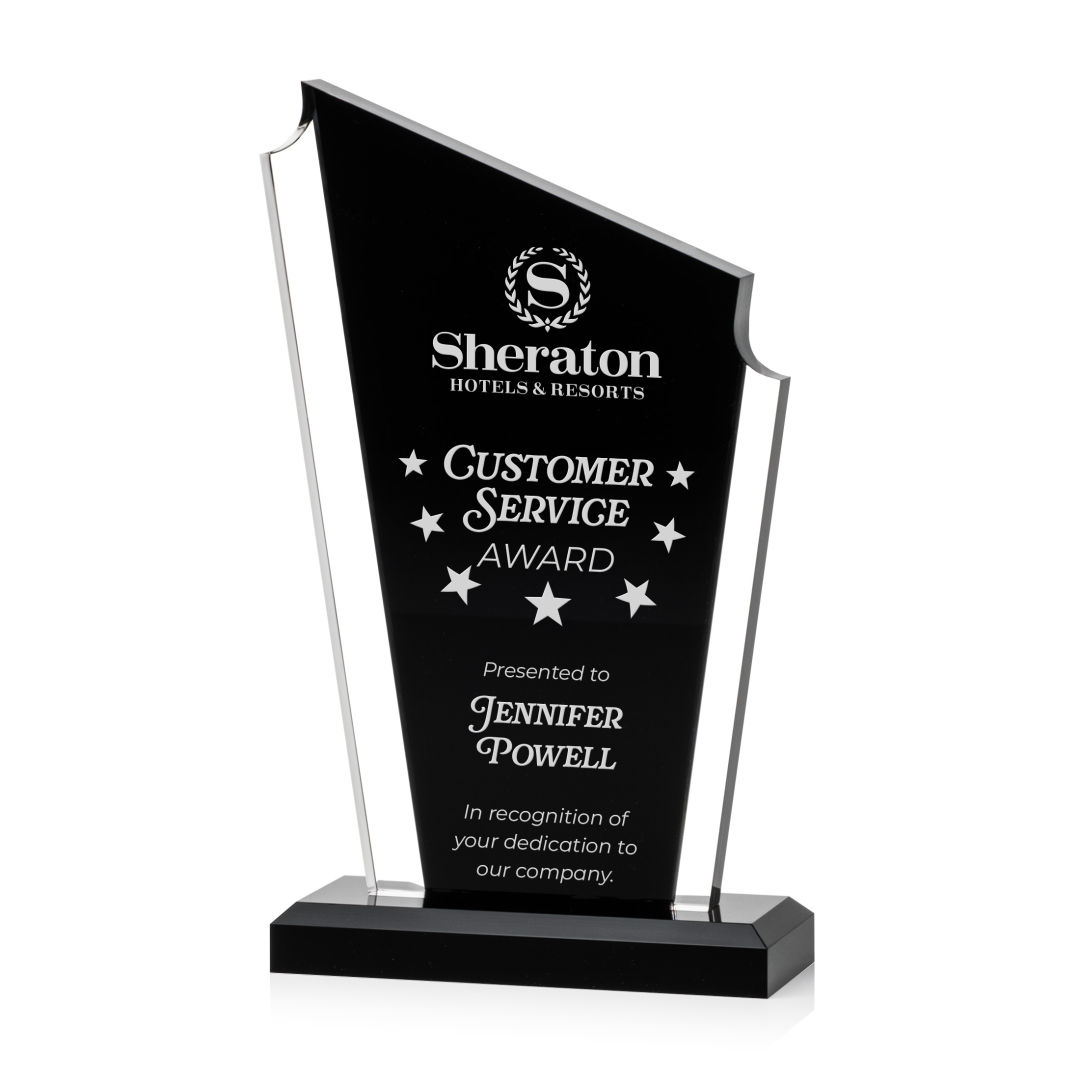The Dunstable Award is a magnificent solid Acrylic accolade perfect for recognizing an outstanding performance or celebrating a milestone! This award showcases a sleek and modern design, combining a classic beveled ebony base with contemporary elements. The contrast between the clear side panels and ebony middle add depth and dimension to the piece, creating a visually stunning effect. 4.5″ W x 7.625″ H x 2.0″ D
