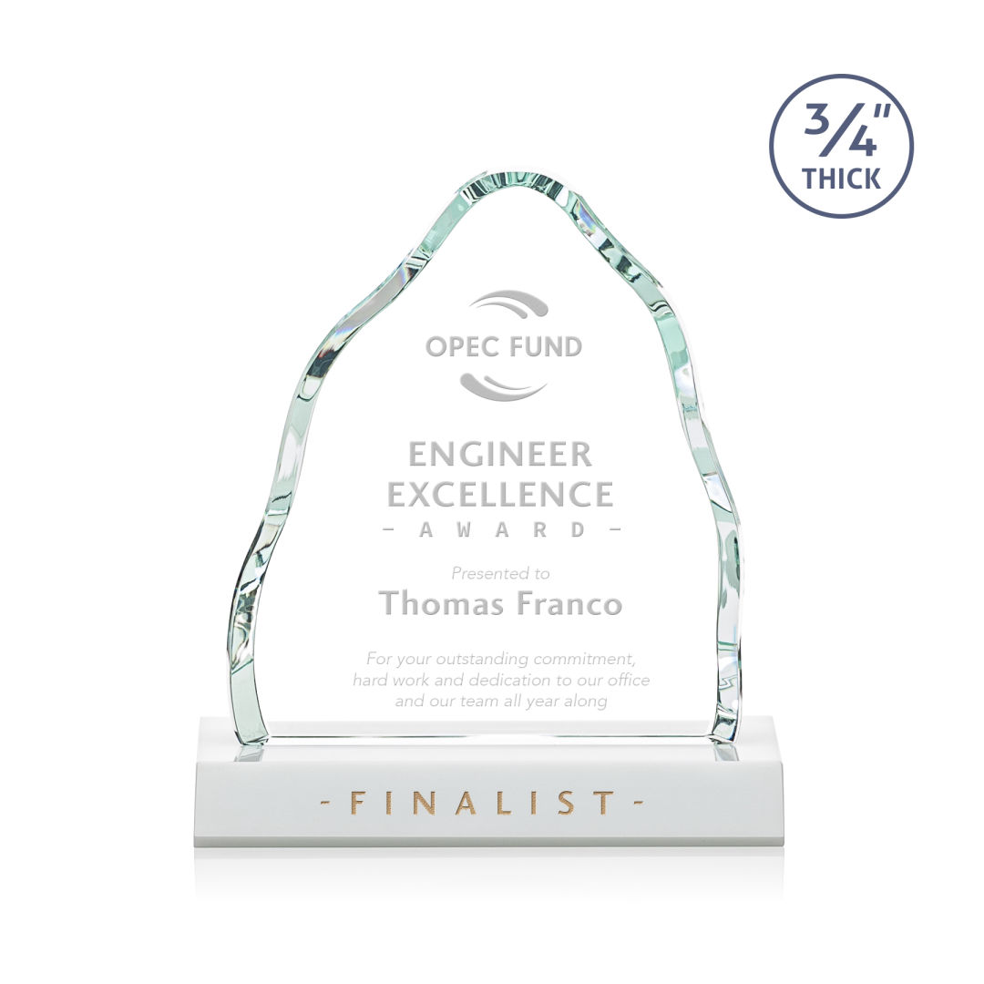 Climb the tallest mountain of recognition with the Dunwich Starfire Award. Mounted on a solid Ivory base, this thick beveled 3/4″ thick Starfire Crystal iceberg is the ultimate way to reward a momentous achievement. 2nd Position Etch Optional. 6.0″ W x 6.75″ H x 3.0″ D