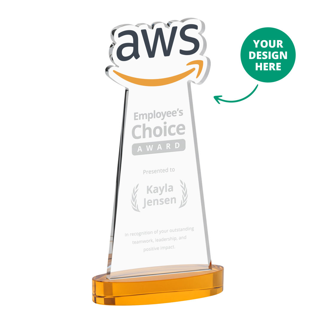 Custom awards made easy! The EdgeCraft Award transforms your logo or artwork into a signature one-of-a-kind crystal piece, making personalized recognition both impactful and effortless. Crafted from brilliant Starfire Crystal, each award features a personalized cut-out top shaped to your design, ideal for logos, product designs, emblems, crests, and much more. Whether you’re creating a single standout award or building an entire program, the EdgeCraft delivers unmatched flexibility with a minimum order quantity of just one piece. The only limitation is your imagination!Designed for both large and small recognition programs, the EdgeCraft Award gives you unmatched control over cost and consistency. Buy in advance to lock in current pricing and avoid fluctuations from tariffs or economic shifts. And with the significant savings offered at higher quantities, it’s easy to maximize your budget while securing everything you need upfront. We store your awards for free, then decorate and ship . 4.0″ W x 8.0″ H x 2.5″ D