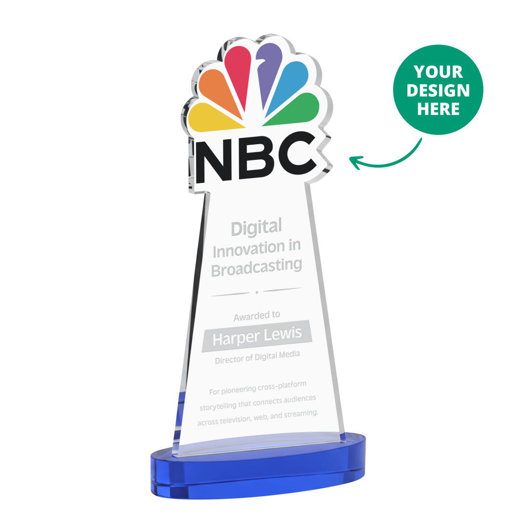Custom awards made easy! The EdgeCraft Award transforms your logo or artwork into a signature one-of-a-kind crystal piece, making personalized recognition both impactful and effortless. Crafted from brilliant Starfire Crystal, each award features a personalized cut-out top shaped to your design—ideal for logos, product designs, emblems, crests, and much more. Whether you’re creating a single standout award or building an entire program, the EdgeCraft delivers unmatched flexibility with a minimum order quantity of just one piece. The only limitation is your imagination!Designed for both large and small recognition programs, the EdgeCraft Award gives you unmatched control over cost and consistency. Buy in advance to lock in current pricing and avoid fluctuations from tariffs or economic shifts. And with the significant savings offered at higher quantities, it’s easy to maximize your budget while securing everything you need upfront. We store your awards for free, then decorate and ship t. 4.0″ W x 8.0″ H x 2.5″ D