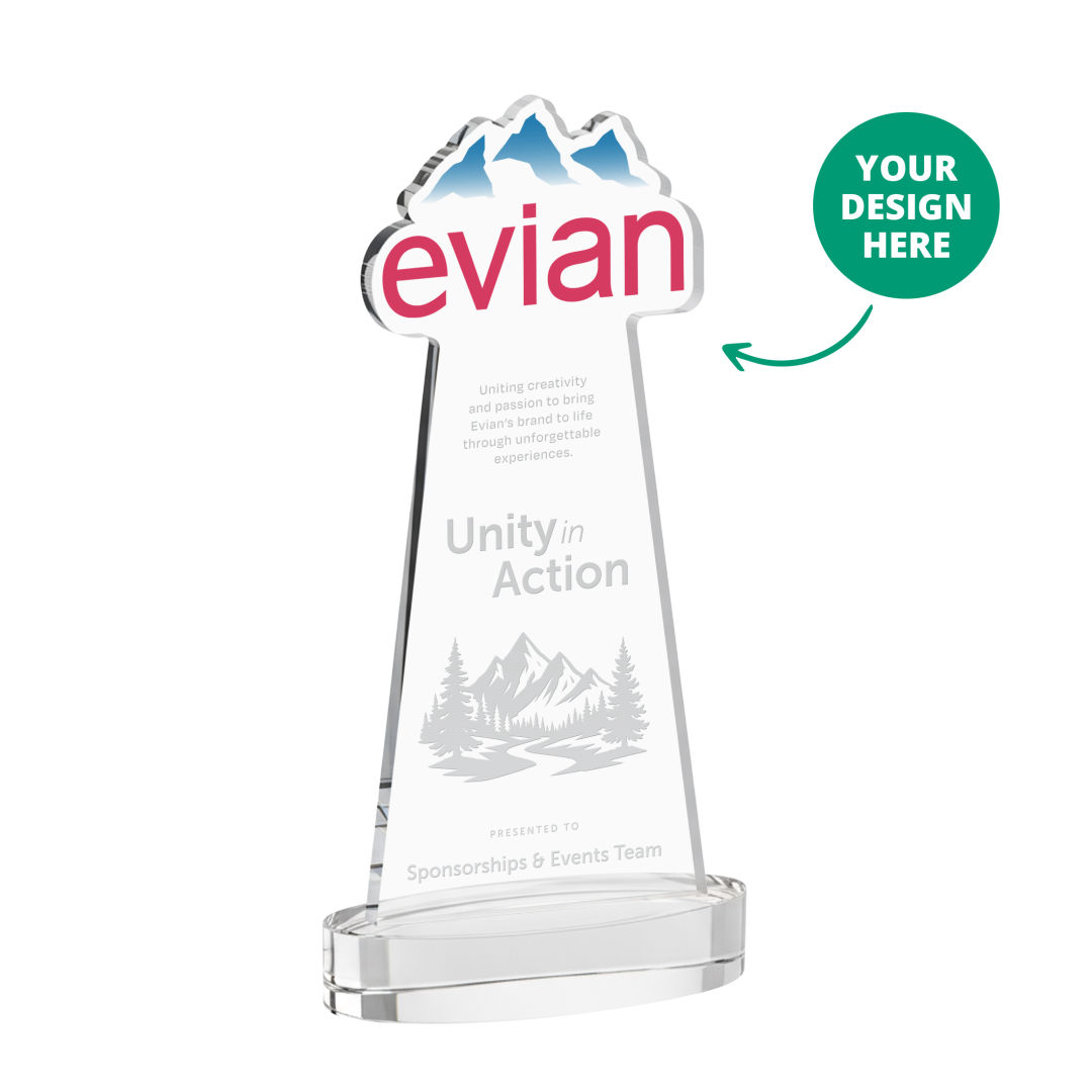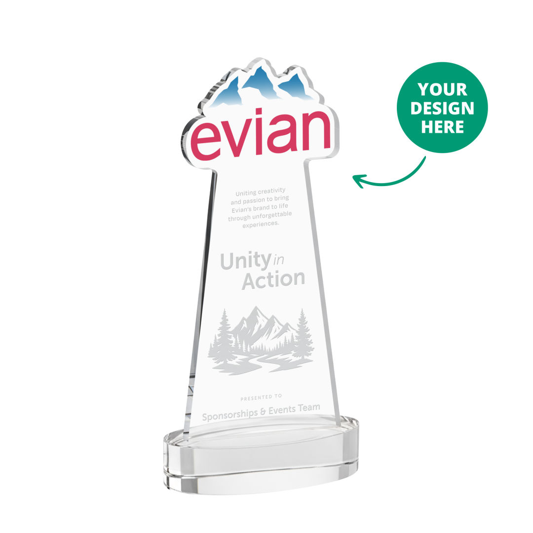 Custom awards made easy! The EdgeCraft Award transforms your logo or artwork into a signature one-of-a-kind crystal piece, making personalized recognition both impactful and effortless. Crafted from brilliant Starfire Crystal, each award features a personalized cut-out top shaped to your design—ideal for logos, product designs, emblems, crests, and much more. Whether you’re creating a single standout award or building an entire program, the EdgeCraft delivers unmatched flexibility with a minimum order quantity of just one piece. The only limitation is your imagination!Designed for both large and small recognition programs, the EdgeCraft Award gives you unmatched control over cost and consistency. Buy in advance to lock in current pricing and avoid fluctuations from tariffs or economic shifts. And with the significant savings offered at higher quantities, it’s easy to maximize your budget while securing everything you need upfront. We store your awards for free, then decorate and ship t. 4.0″ W x 8.0″ H x 2.5″ D
