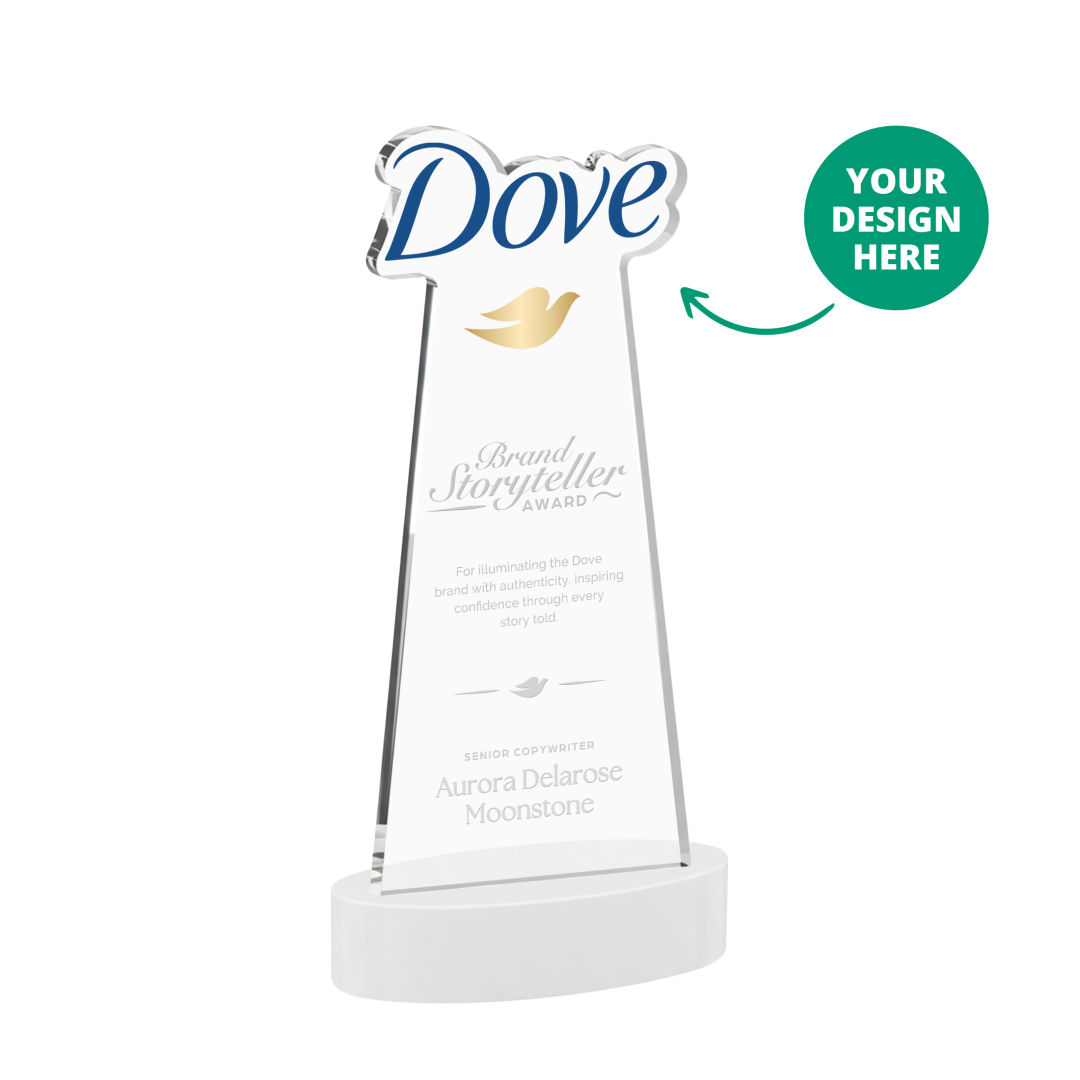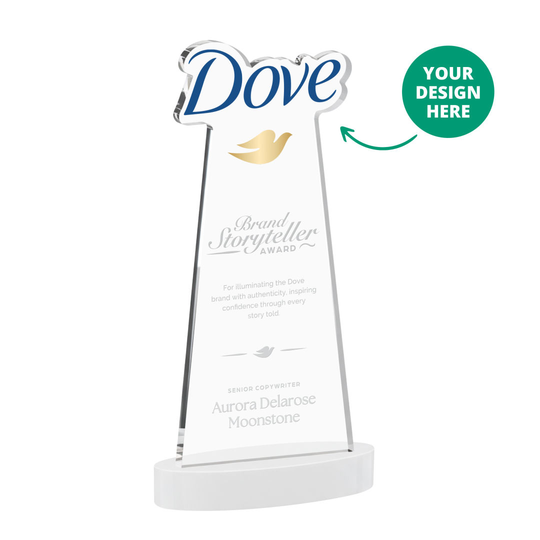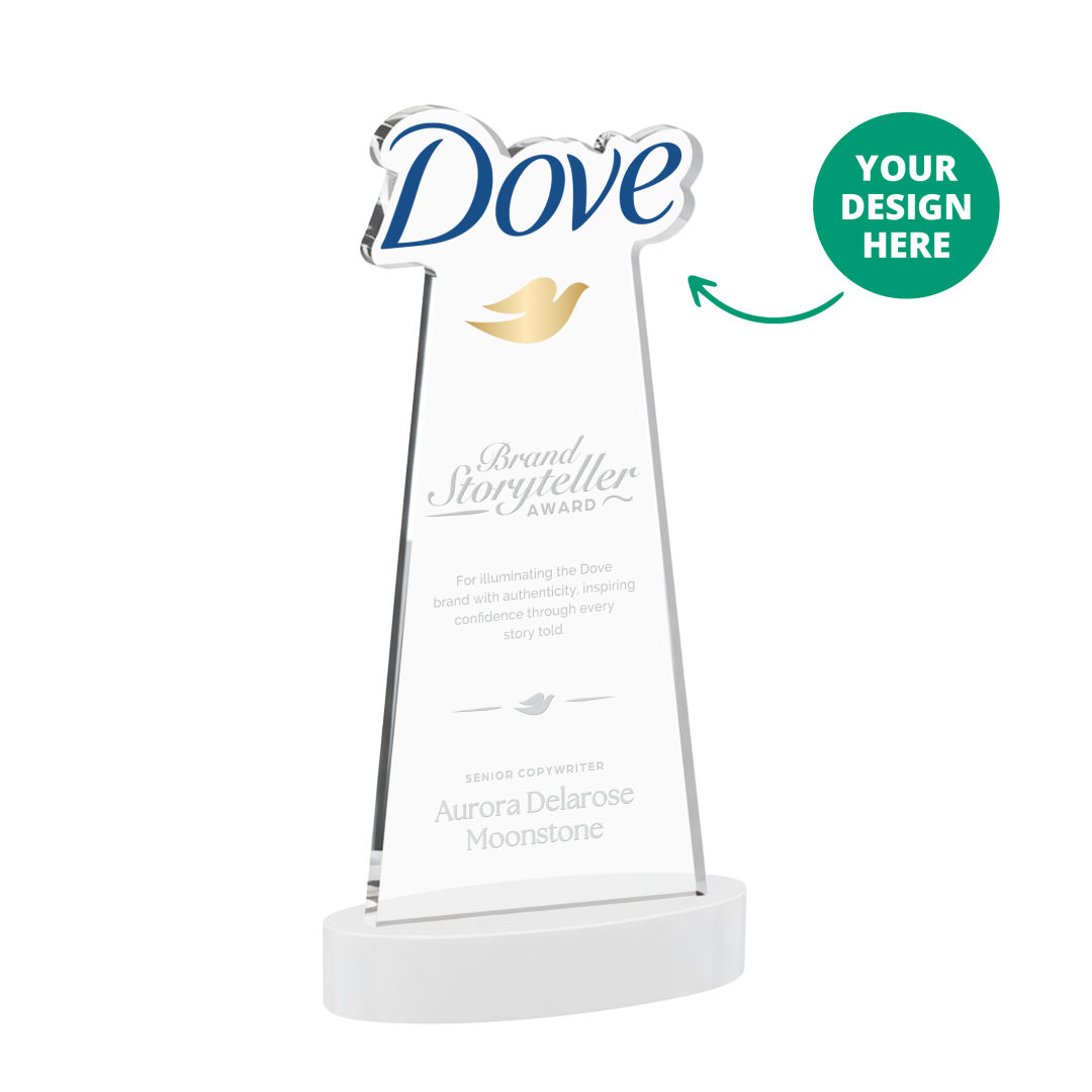 Custom awards made easy! The EdgeCraft Award transforms your logo or artwork into a signature one-of-a-kind crystal piece, making personalized recognition both impactful and effortless. Crafted from brilliant Starfire Crystal, each award features a personalized cut-out top shaped to your design—ideal for logos, product designs, emblems, crests, and much more. Whether you’re creating a single standout award or building an entire program, the EdgeCraft delivers unmatched flexibility with a minimum order quantity of just one piece. The only limitation is your imagination!Designed for both large and small recognition programs, the EdgeCraft Award gives you unmatched control over cost and consistency. Buy in advance to lock in current pricing and avoid fluctuations from tariffs or economic shifts. And with the significant savings offered at higher quantities, it’s easy to maximize your budget while securing everything you need upfront. We store your awards for free, then decorate and ship t. 4.0″ W x 8.0″ H x 2.5″ D