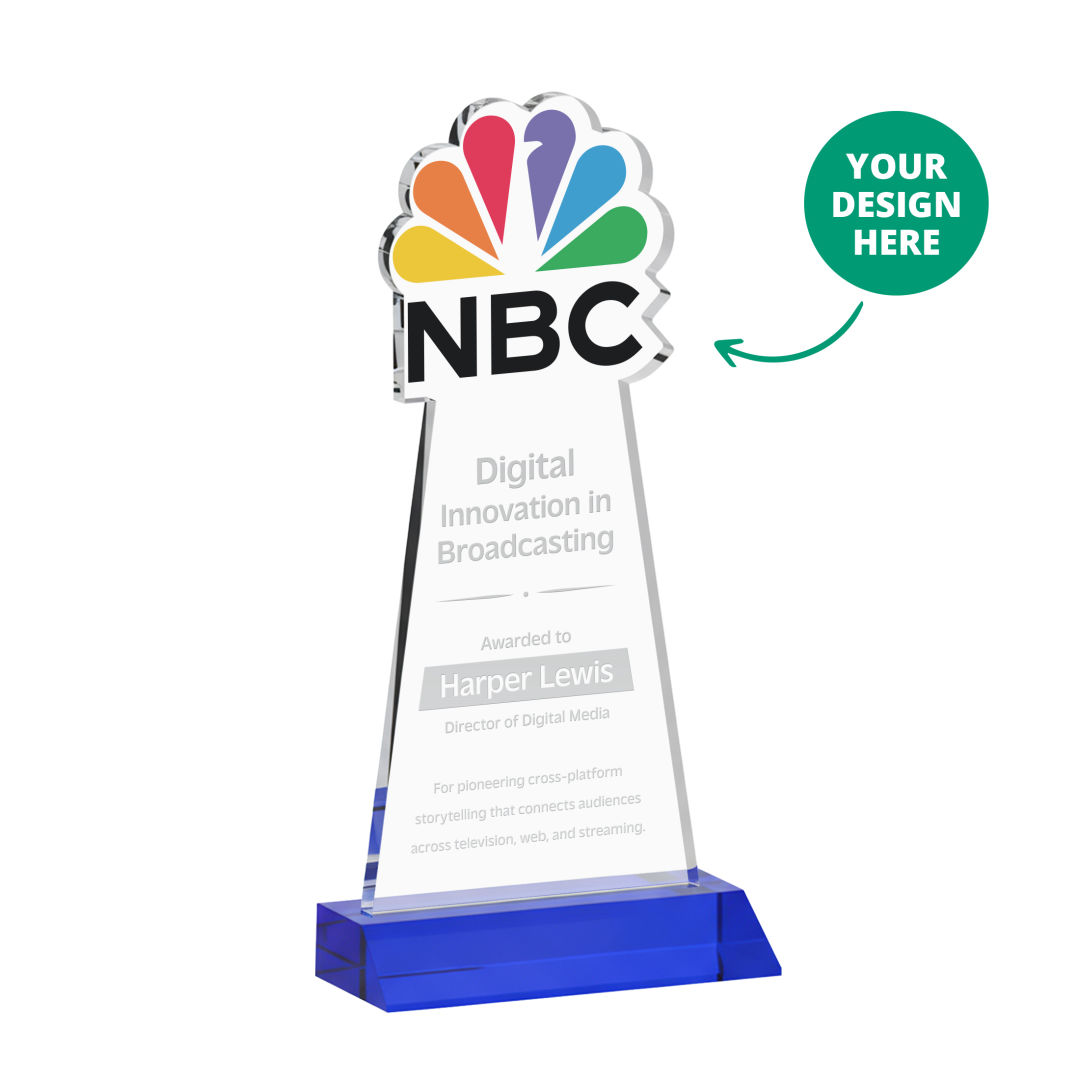 Custom awards made easy! The EdgeCraft Award transforms your logo or artwork into a signature one-of-a-kind crystal piece, making personalized recognition both impactful and effortless. Crafted from brilliant Starfire Crystal, each award features a personalized cut-out top shaped to your design, ideal for logos, product designs, emblems, crests, and much more. Whether you’re creating a single standout award or building an entire program, the EdgeCraft delivers unmatched flexibility with a minimum order quantity of just one piece. The only limitation is your imagination!Designed for both large and small recognition programs, the EdgeCraft Award gives you unmatched control over cost and consistency. Buy in advance to lock in current pricing and avoid fluctuations from tariffs or economic shifts. And with the significant savings offered at higher quantities, it’s easy to maximize your budget while securing everything you need upfront. We store your awards for free, then decorate and ship . 4.0″ W x 7.75″ H x 3.0″ D