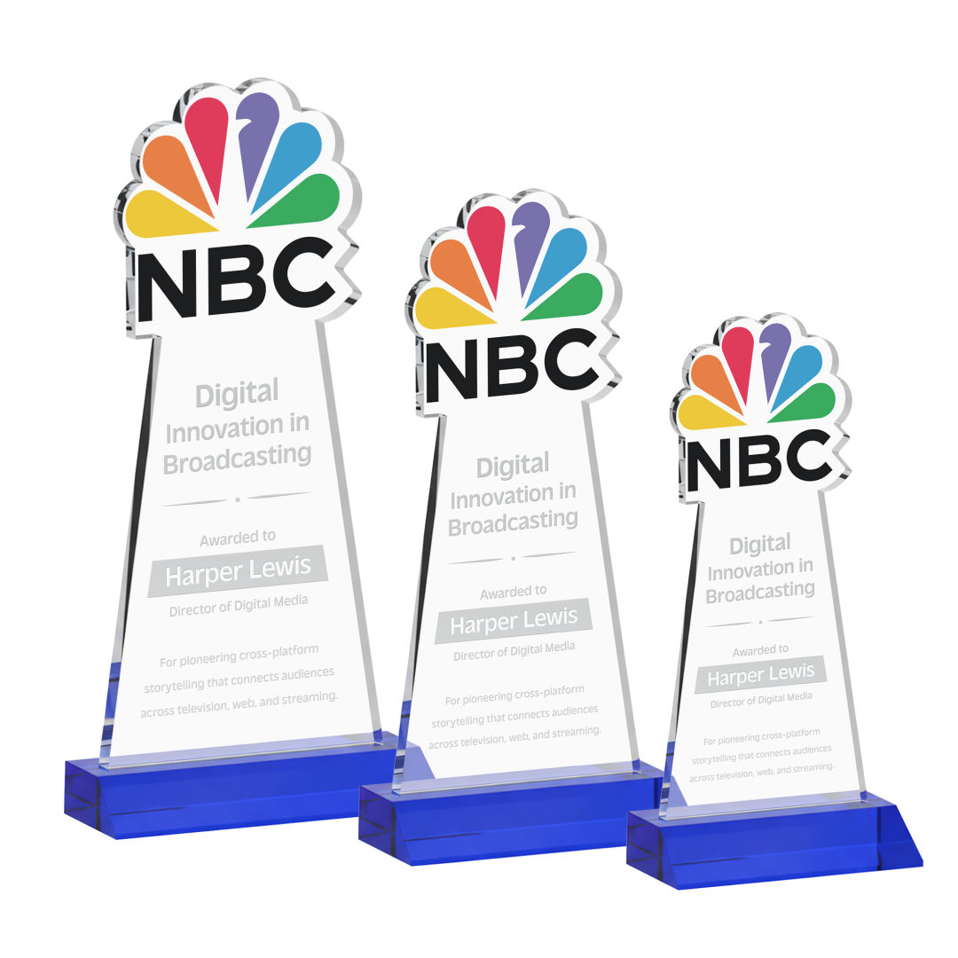 Custom awards made easy! The EdgeCraft Award transforms your logo or artwork into a signature one-of-a-kind crystal piece, making personalized recognition both impactful and effortless. Crafted from brilliant Starfire Crystal, each award features a personalized cut-out top shaped to your design—ideal for logos, product designs, emblems, crests, and much more. Whether you’re creating a single standout award or building an entire program, the EdgeCraft delivers unmatched flexibility with a minimum order quantity of just one piece. The only limitation is your imagination!Designed for both large and small recognition programs, the EdgeCraft Award gives you unmatched control over cost and consistency. Buy in advance to lock in current pricing and avoid fluctuations from tariffs or economic shifts. And with the significant savings offered at higher quantities, it’s easy to maximize your budget while securing everything you need upfront. We store your awards for free, then decorate and ship t. 4.0″ W x 7.75″ H x 3.0″ D