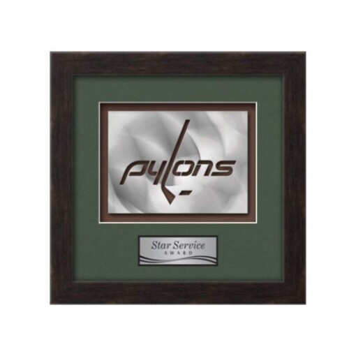 Elevate your brand to a gallery quality work of art with our proprietary AquaShapingâ„¢ process. Using a block of solid brushed aluminum, our technology cuts a dramatic contemporary rendition of your logo from solid metal. The dimensional sculpture is mounted in our Eldridge presentation frame and paried with your choice of 2 standard mattes and a personalization plate. 11.0″ W x 11.0″ H