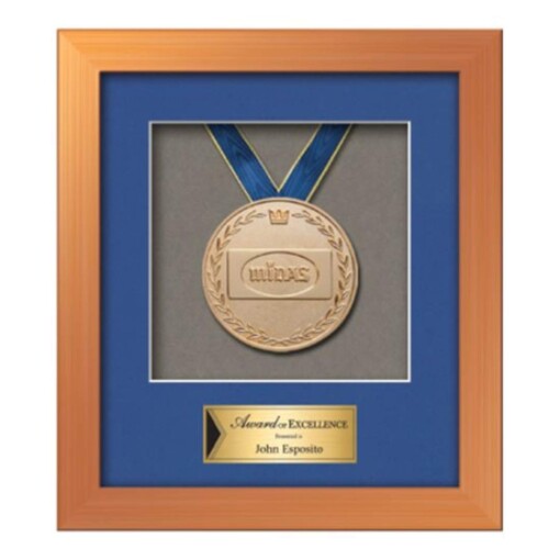 The stunning Eldridge encapsulates your medallion within a beautiful bronze frame. Price includes mounting and framing customer supplied Medallions. Medallions not included. 10.0″ W x 11.5″ H