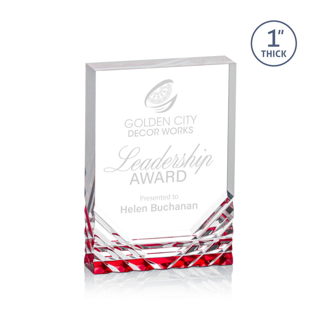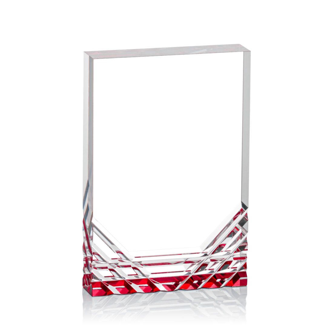 Feel the electric touch of recognition with the Elektra Award! This thick rectangular acrylic award features a clear or colored bottom, where the color reflects through the cuts of acrylic for a stunning display of your words of appreciation. 3.5″ W x 5.0″ H x 1.0″ D