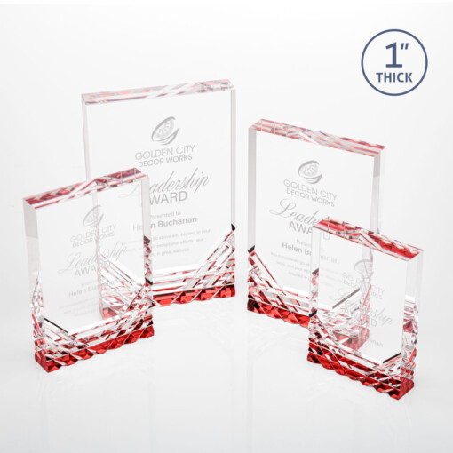 Feel the electric touch of recognition with the Elektra Award! This thick rectangular acrylic award features a clear or colored bottom, where the color reflects through the cuts of acrylic for a stunning display of your words of appreciation. 3.5″ W x 5.0″ H x 1.0″ D