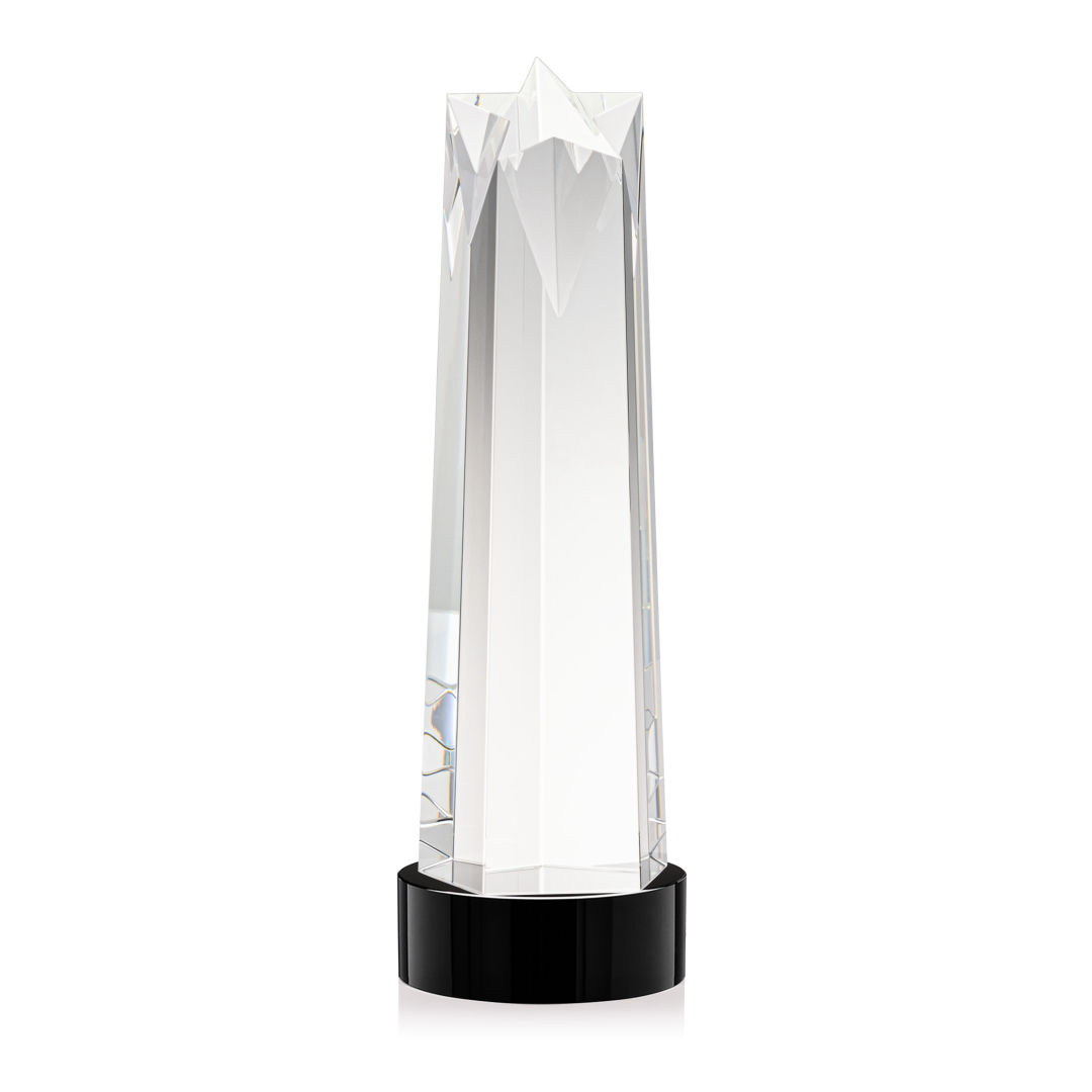 The Ellesmere VividPrint™ Award on Base is a stunning obelisk of recognition artistry crafted from Optical Crystal. Crowning this exquisite award is a flat star face, meticulously cut and polished to perfection. Its flat surface serves as a canvas for personalized engraving, allowing for a bespoke touch that commemorates the recipient’s remarkable success. Complete with a Clear, Emerald, Ebony, or Sapphire Optical Crystal Base. 2nd Position Decoration Optional. 4.5″ W x 11.5″ H x 4.5″ D
