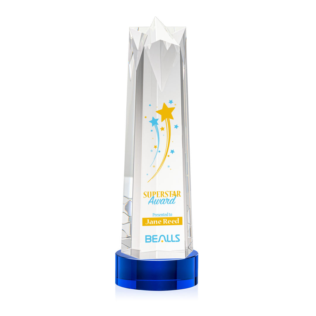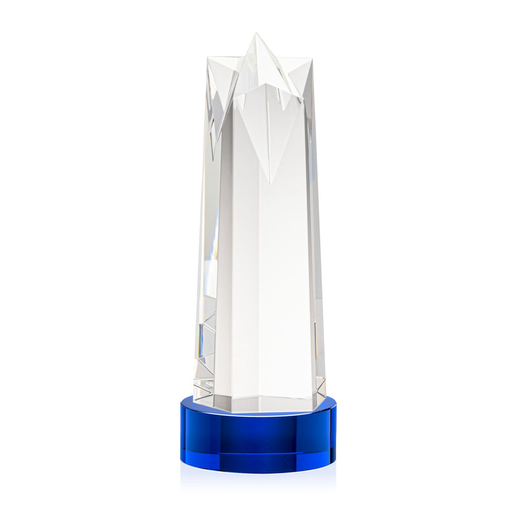 The Ellesmere VividPrint™ Award on Base is a stunning obelisk of recognition artistry crafted from Optical Crystal. Crowning this exquisite award is a flat star face, meticulously cut and polished to perfection. Its flat surface serves as a canvas for personalized engraving, allowing for a bespoke touch that commemorates the recipient’s remarkable success. Complete with a Clear, Emerald, Ebony, or Sapphire Optical Crystal Base. 2nd Position Decoration Optional. 4.5″ W x 11.5″ H x 4.5″ D