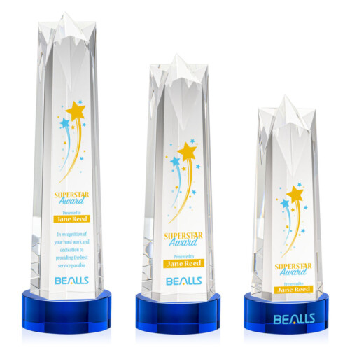 The Ellesmere VividPrint™ Award on Base is a stunning obelisk of recognition artistry crafted from Optical Crystal. Crowning this exquisite award is a flat star face, meticulously cut and polished to perfection. Its flat surface serves as a canvas for personalized engraving, allowing for a bespoke touch that commemorates the recipient’s remarkable success. Complete with a Clear, Emerald, Ebony, or Sapphire Optical Crystal Base. 2nd Position Decoration Optional. 4.5″ W x 11.5″ H x 4.5″ D