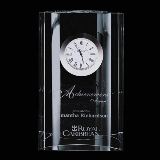 Extra Thick Optical Crystal Freestanding Mantel Clock is a novel recognition piece for a special achievement or a great gift for a special employee or visiting VIP. 4.125″ W x 6.0″ H