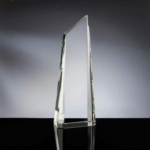 The Emerson Award with its steep beveled tapered sides sparkles from every angle. This self standing award is manufactured from the finest quality K9 Clear Optic Crystal. 3.3″ L x 2″ W x 9.7″ H