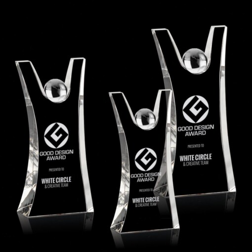 The Emmet Award proudly raises its arms in salute of your achievement. Celebrate any accomplishment with this playful combination of optical crystal shapes. 3.75″ W x 8.0″ H x 2.0″ D