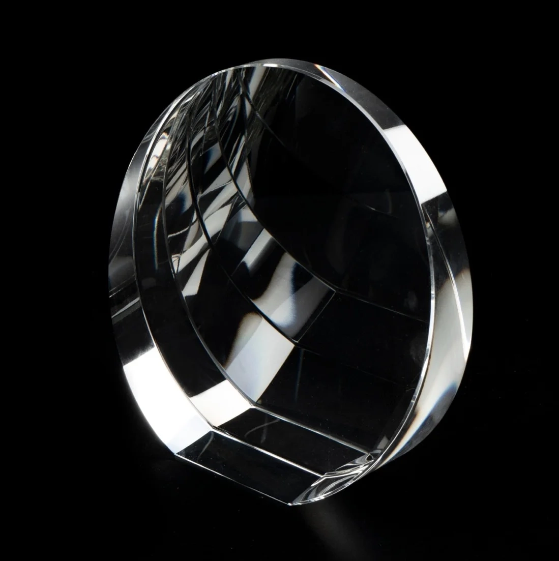 The Emory Circle features the extremely popular design of a tapered circle with a flat base. Each is manufactured from premium quality Clear K9 Optic Crystal and has meticulously hand finished edges. The Emory Circle is shipped in a premium quality presentation box. This award is available as a blank for engravers, or if you prefer we can do the engraving for you. 3.1″ L x 1″ W x 2.9″ H