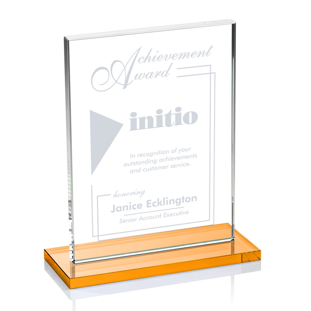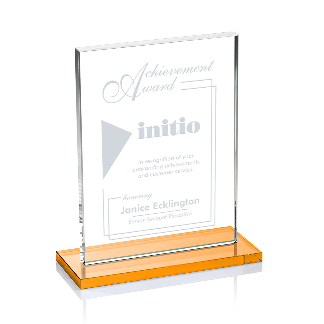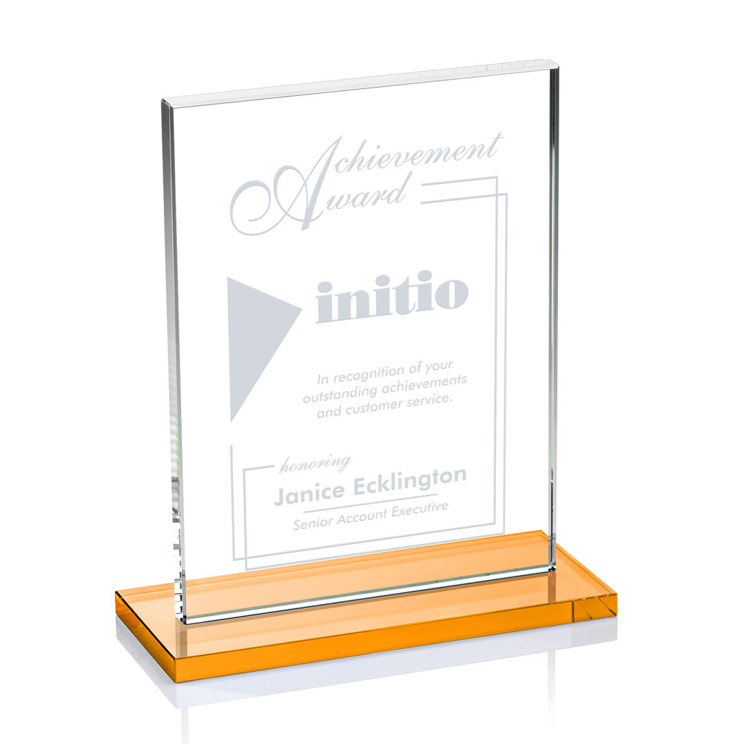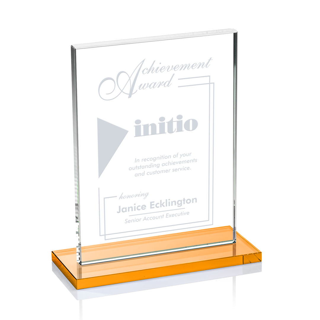 The Emperor Award is a simple yet elegant 1/2″ thick Jade Crystal rectangle upright mounted vertical or horizontal on a jade crystal base. An ideal award featuring a large decorating area to recognize a significant achievement. Available in Starfire, see associated items. 5.0″ W x 6.375″ H x 3.0″ D