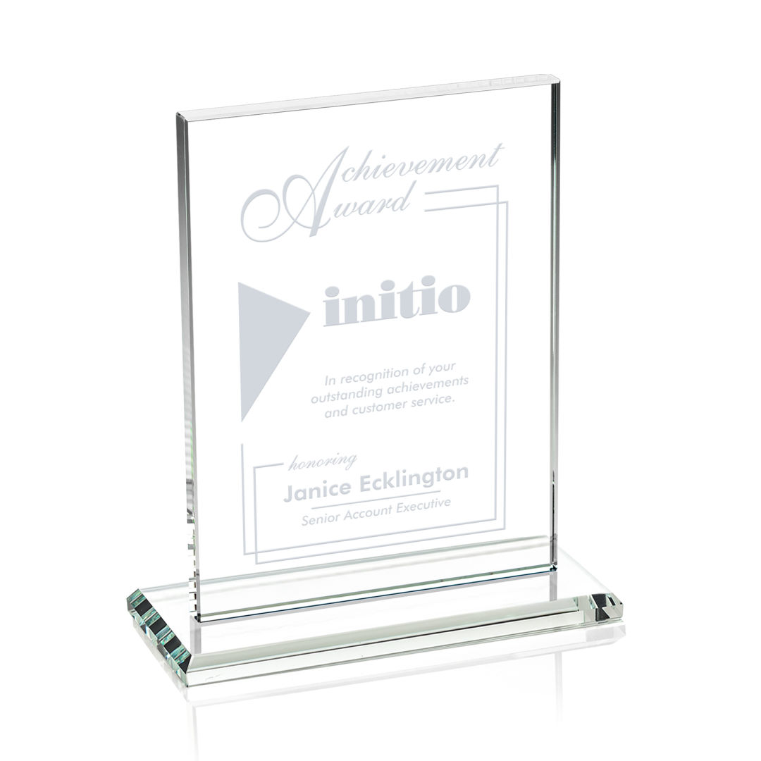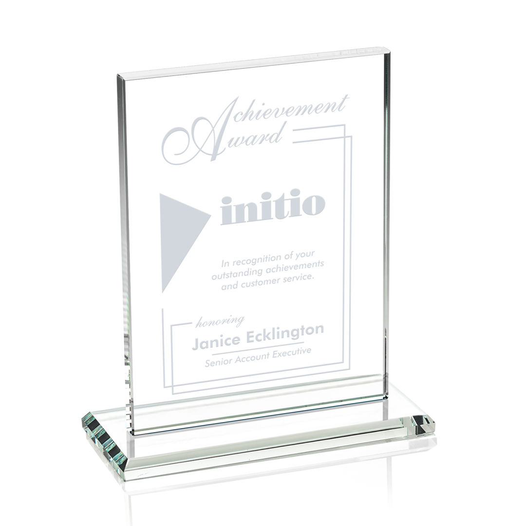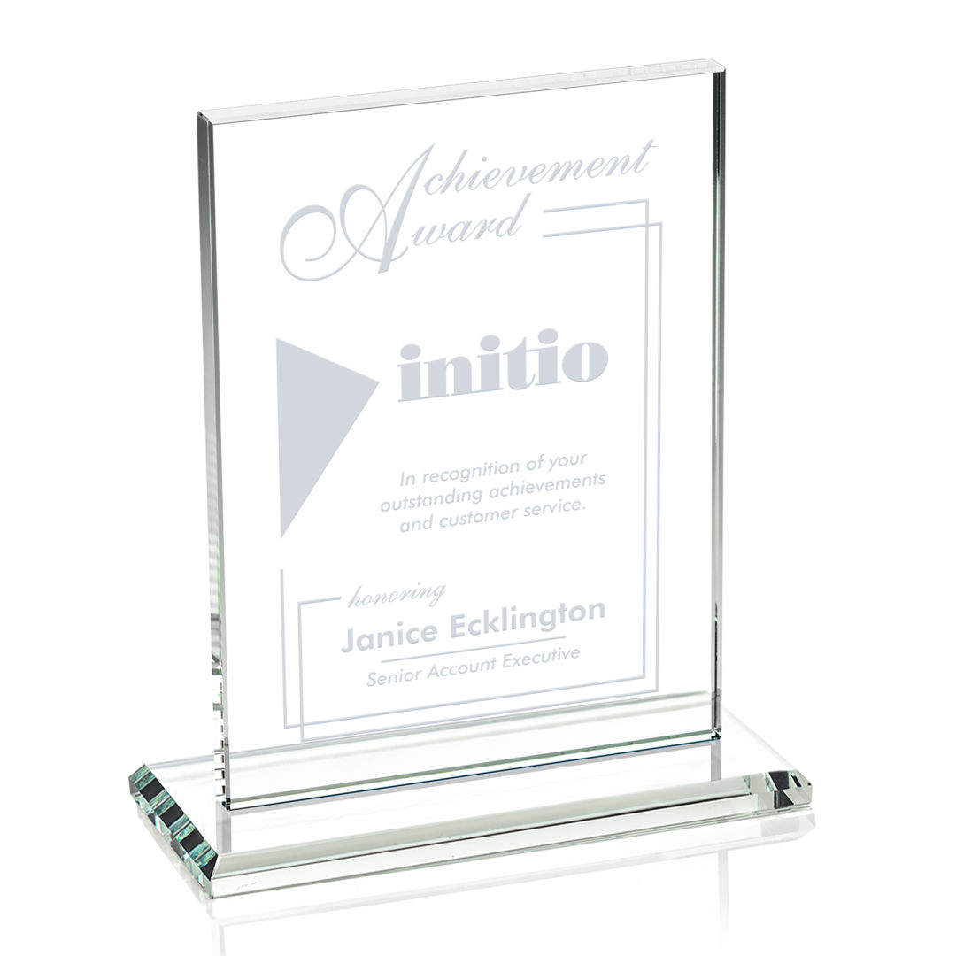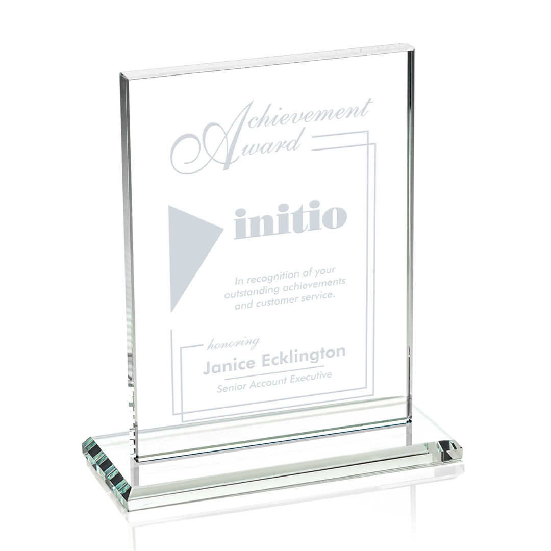 The Emperor Award is a simple yet elegant 0.5″ thick Starfire Crystal rectangle upright mounted vertical or horizontal on a beveled Starfire base. An ideal award featuring a large decorating area to recognize a significant achievement. 5.0″ W x 6.375″ H x 3.0″ D