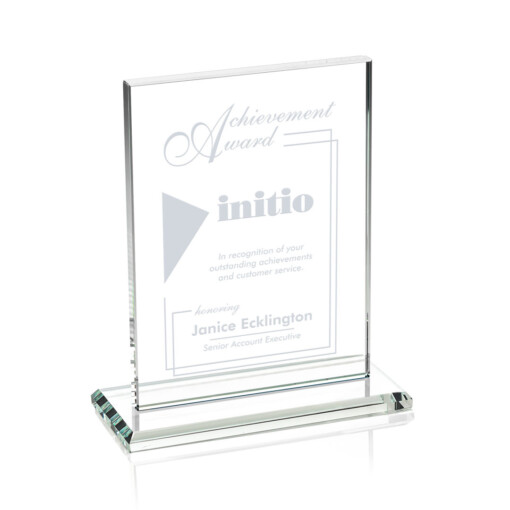The Emperor Award is a simple yet elegant 0.5″ thick Starfire Crystal rectangle upright mounted vertical or horizontal on a beveled Starfire base. An ideal award featuring a large decorating area to recognize a significant achievement. 5.0″ W x 6.375″ H x 3.0″ D