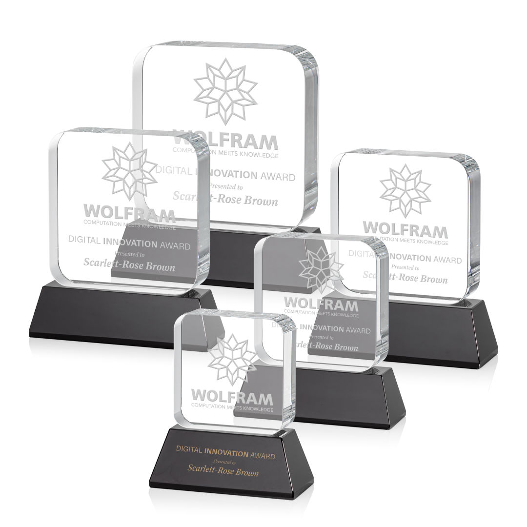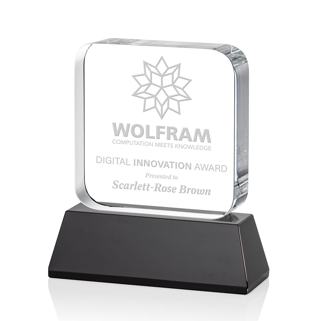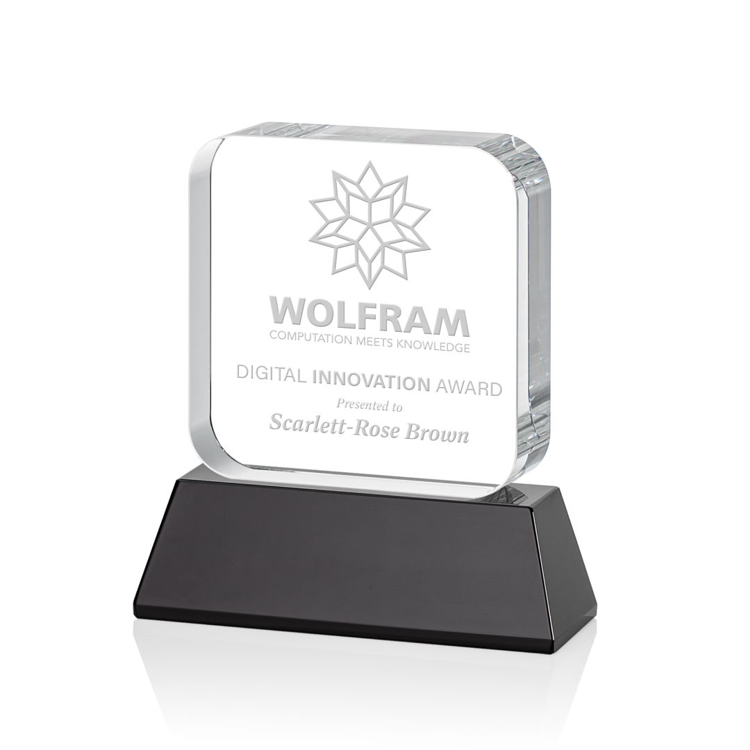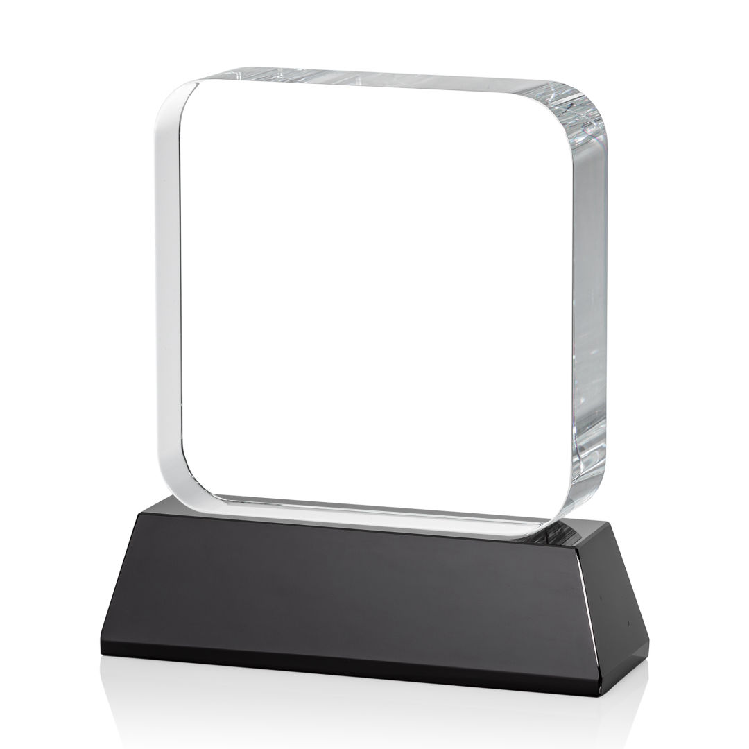 The Flamborough Award on base features a thick optical crystal block with rounded edges that sits atop a magnificent black optical crystal base. Great for recognizing achievement and innovation in the tech and app world, or any corporate recognition program. Second position etch and colorfill optional. 4.0″ W x 4.5″ H x 2.0″ D