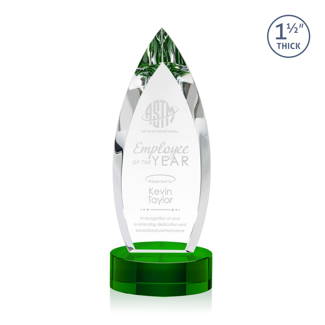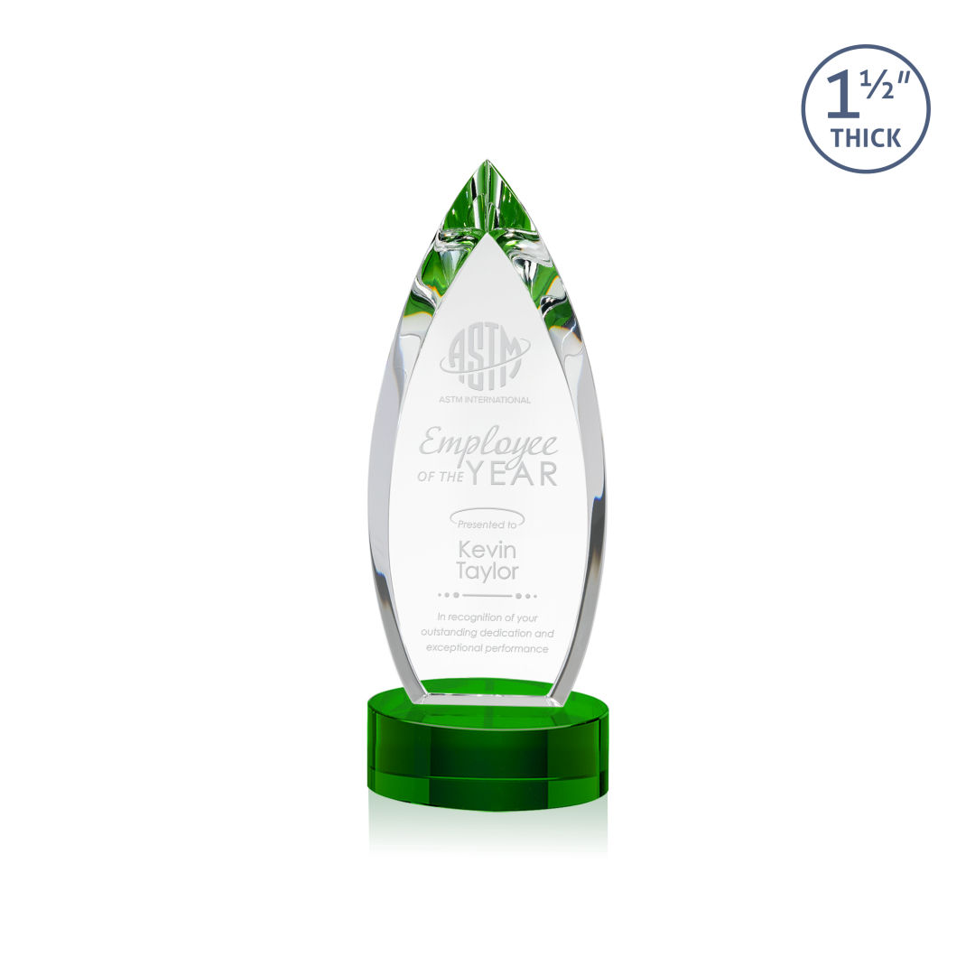 Celebrate excellence with the Optical Crystal Fortier Award, beautifully mounted on a complementing base. Featuring striking deep bevels, this award radiates sophistication, while the vibrant colored crystal accent at the bottom reflects throughout the piece, creating a stunning visual effect that draws the eye. Optional second location available on the base. 3.5″ W x 9.125″ H x 3.5″ D