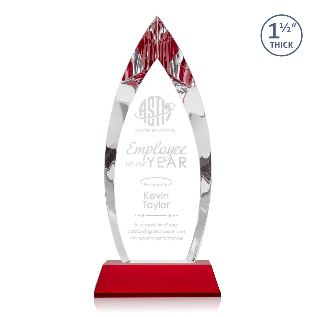 Celebrate excellence with the Optical Crystal Fortier Award, beautifully mounted on a complementing base. Featuring striking deep bevels, this award radiates sophistication, while the vibrant colored crystal accent at the bottom reflects throughout the piece, creating a stunning visual effect that draws the eye. Optional second location available on the base. 4.0″ W x 10.0″ H x 2.0″ D