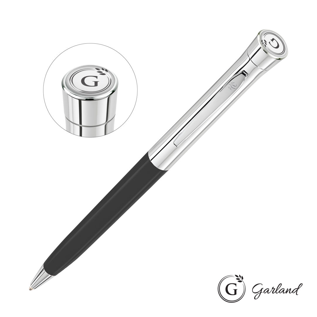 The Founders Collection was designed to accommodate larger imprint areas by offering a resin barrel and chrome-plated cap, while maintaining the same Garland writing experience. Your purchase includes a Garland dome top and one color barrel silk screen. Available in ballpoint only. Since 1926, Garland pens have been crafted with brass internal components, guaranteed for life, and beautifully presented in an individually packaged soft-touch tuck box.Pen size: 5.3″ W x 0.475″ H. 5.3″ W x 0.475″ H