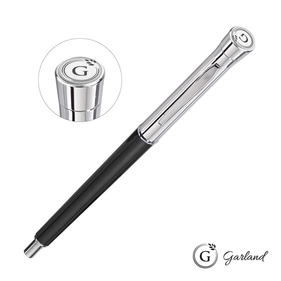 The Garland® Monogram Collection Mechanical Pencil offers a perfect balance of style, precision, and craftsmanship. This premium metal mechanical pencil features a sleek gloss-finish barrel, a chrome-polished brass cap, and refined chrome accents that exude professional elegance. Topped with the signature Garland dome, it writes smoothly with 0.7 mm pencil lead, ideal for detailed work or everyday writing. Established in 1926, Garland pens feature brass internal components, are guaranteed for life, and come packaged to impress in an individually packaged in a soft-touch tuck box.Pen Size: 5.4″ W x 0.475″ H. 5.4″ W x 0.475″ H