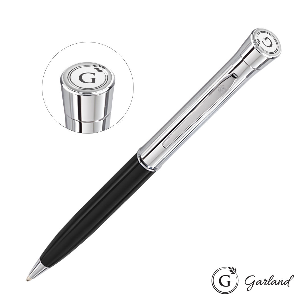 The Garland® Monogram Collection Twist Ballpoint Pen showcases timeless elegance and exceptional quality. This metal twist-action pen features a sleek gloss-finish barrel, complemented by a chrome-polished brass cap and brilliant chrome accents for a refined, professional look. Topped with the signature Garland dome, it delivers smooth, effortless writing with black ink. Established in 1926, Garland pens feature brass internal components, are guaranteed for life, and come packaged to impress in an individually packaged in a soft-touch tuck box.Pen Size: 5.3″ W x 0.475″ H. 5.3″ W x 0.475″ H