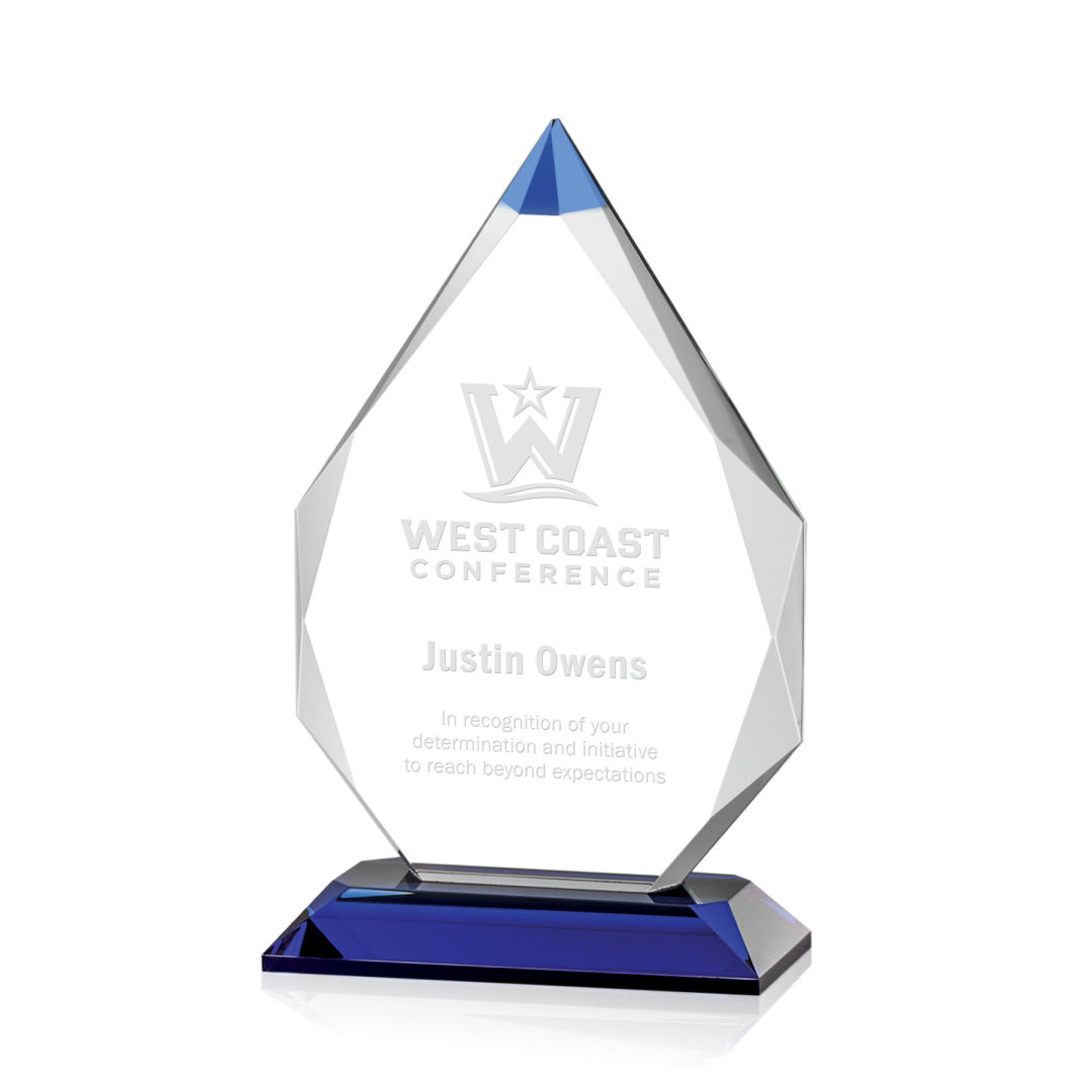 The Optical Crystal Geneva 3D Award is an obelisk that features a mesmerizing design with interchanging bevels, lending it a dynamic and captivating appearance. Each facet catches and reflects light, creating a dazzling display that symbolizes the multifaceted nature of success. Mounted on an extra-thick optical base in your choice of clear, emerald, sapphire or ebony. Take our deep etch process even deeper with our incredible subsurface Dimensions 3D Engraving. Our 3D Pop process creates a simulated 3D effect from a 2D photo. For a true 3D engraving, please provide a 3D engraving file (.obj), or we can redraw it for a fee. 4.0″ W x 8.5″ H x 3.0″ D