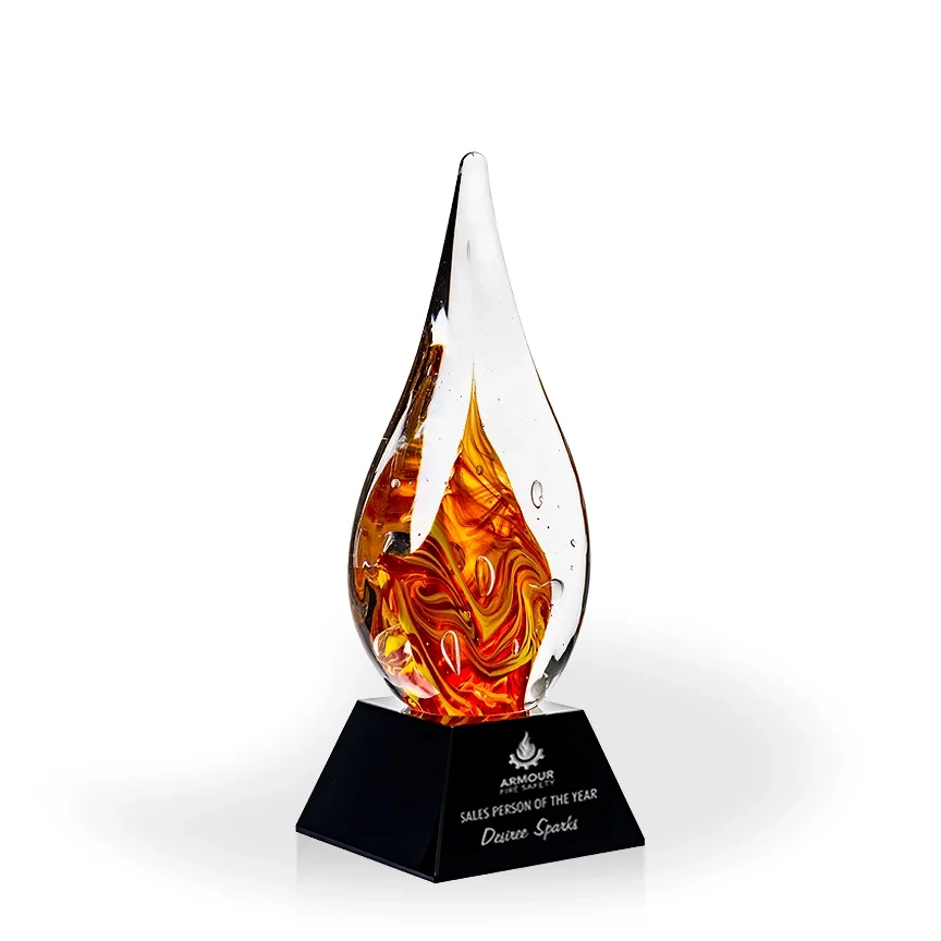 Glimmer Flame Art Glass Award – Black Pyramid Base