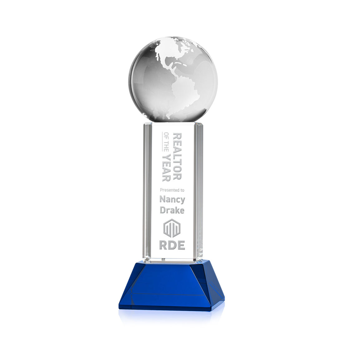 Celebrate outstanding achievements with our perfectly shaped Optical Crystal Globe Award, elegantly mounted on a handsome base and designed to rotate freely, symbolizing global excellence. This exquisite award offers a perfect fit for any recognition ceremony. Honor your recipients with a timeless piece that reflects their exceptional contributions and global impact. Second position etch optional. 4.0″ W x 6.0″ H x 4.0″ D