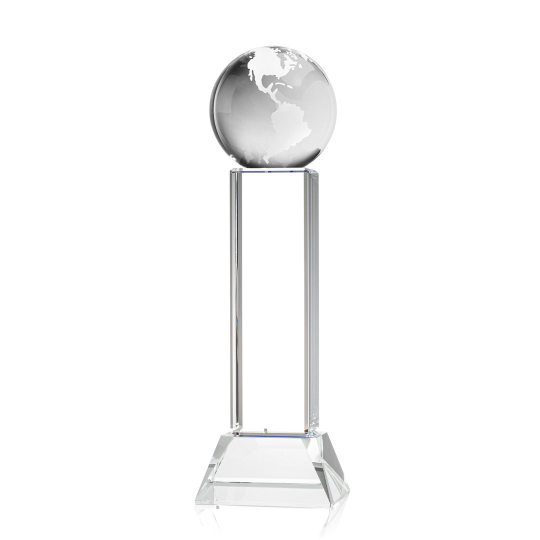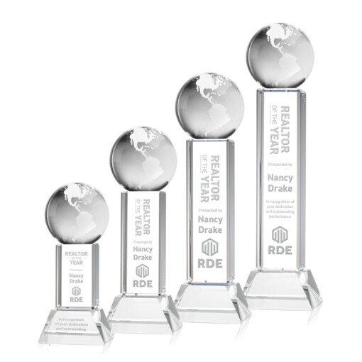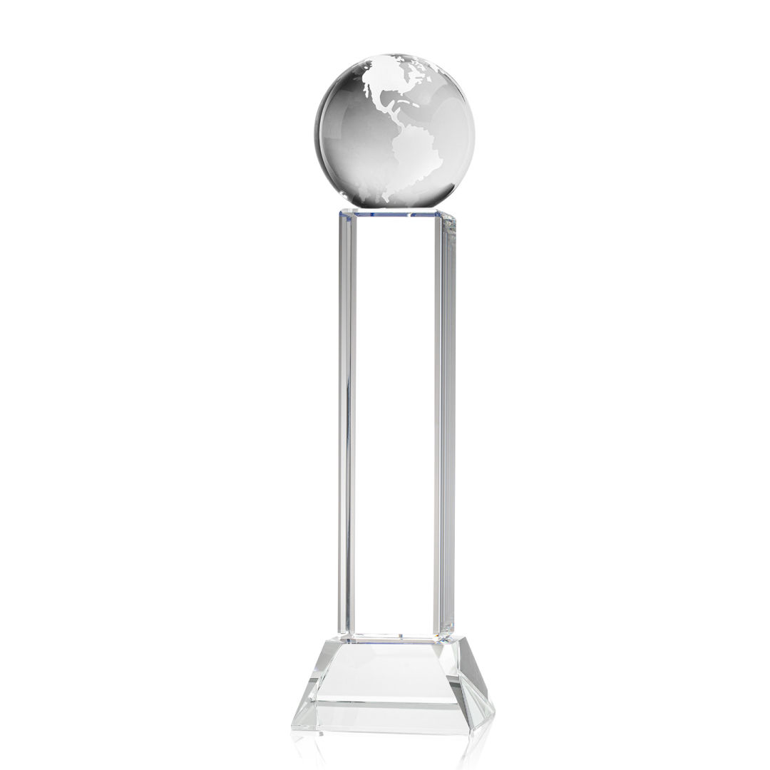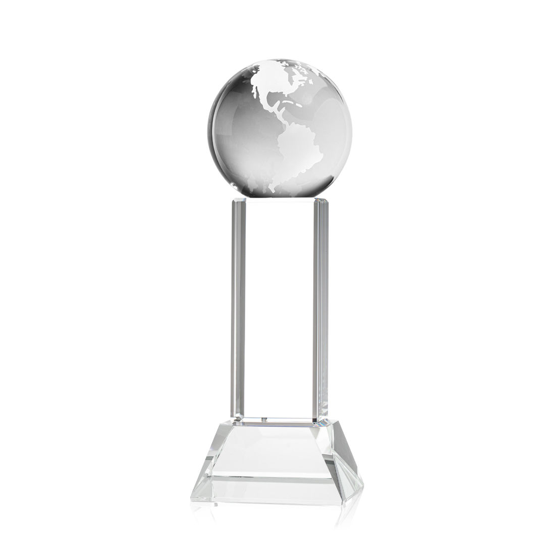 Celebrate outstanding achievements with our perfectly shaped Optical Crystal Globe Award, elegantly mounted on a handsome base and designed to rotate freely, symbolizing global excellence. This exquisite award offers a perfect fit for any recognition ceremony. Honor your recipients with a timeless piece that reflects their exceptional contributions and global impact. Second position etch optional. 4.0″ W x 6.0″ H x 4.0″ D