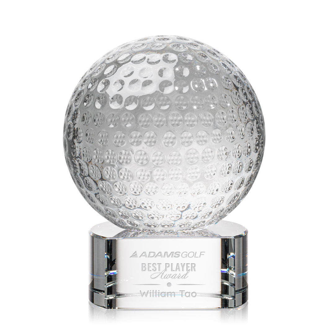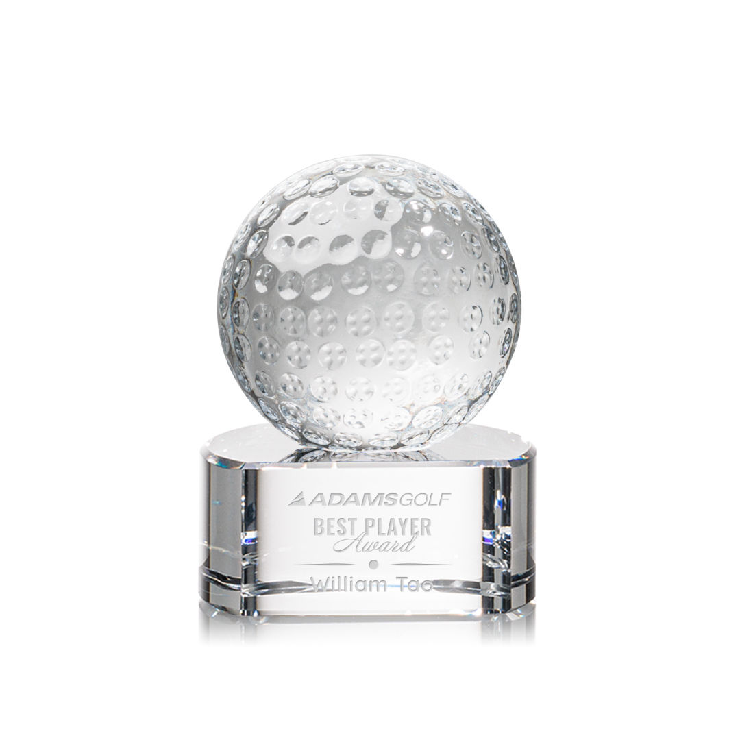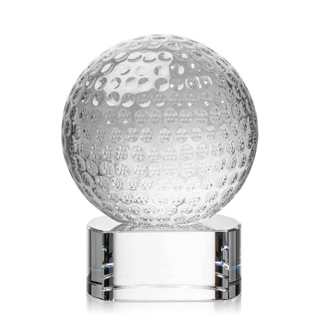 Our exquisite Optical Crystal Golf Ball Award is a timeless tribute to the passion and skill of golfers. The centerpiece of this masterpiece is a flawlessly crafted Optical Crystal Golf Ball that captures and refracts light in a mesmerizing display. Mounted on a complimenting Optical base for personalization with a Logo or Name. This stunning piece of artistry embodies precision and elegance, making it the perfect award or keepsake for golf enthusiasts, tournaments, or special occasions. 2.5″ W x 3.375″ H x 2.375″ D