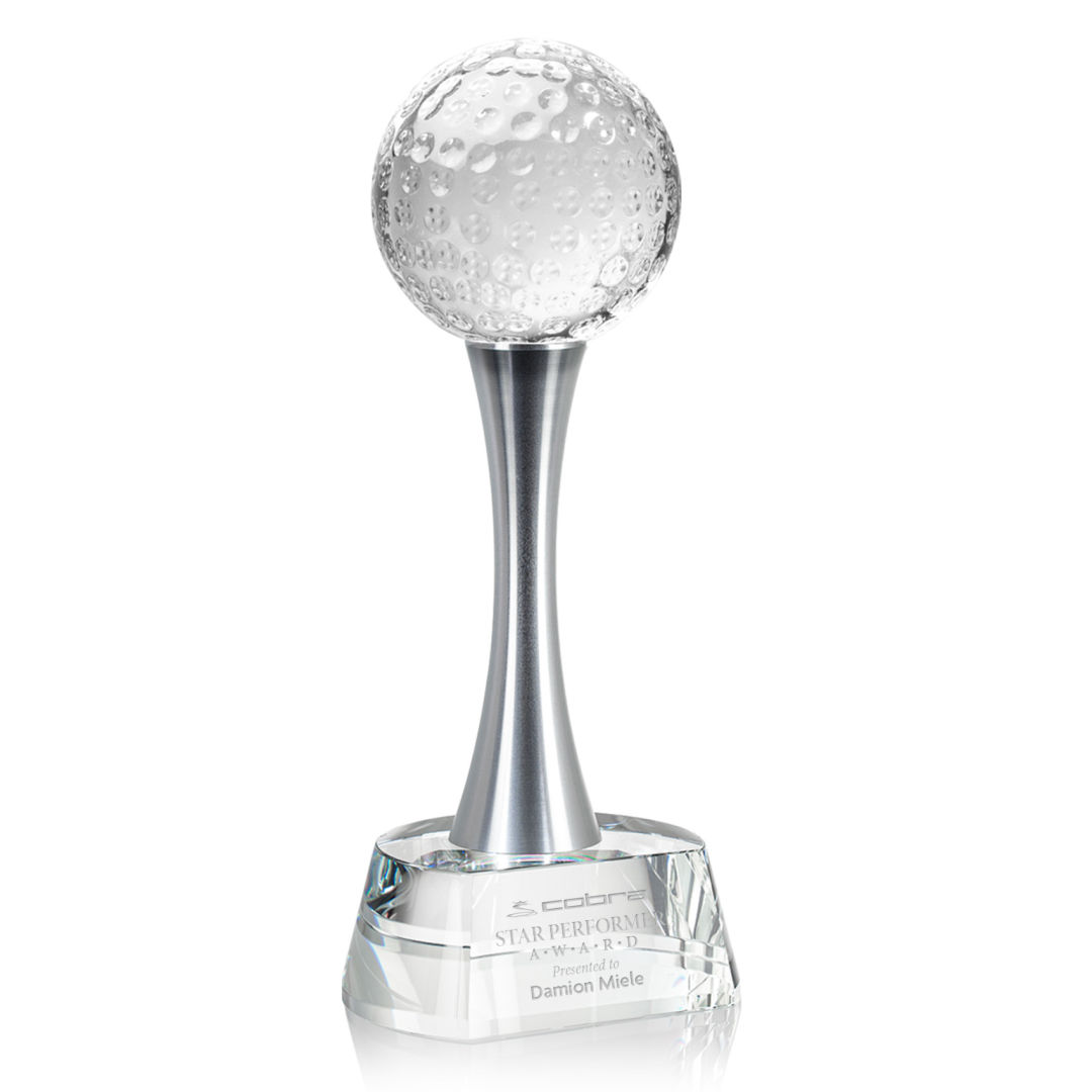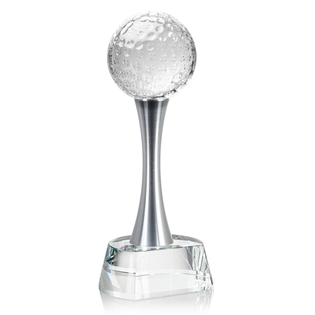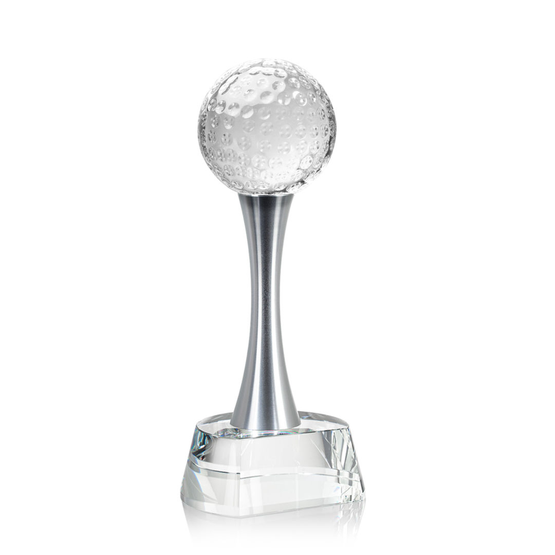 Our exquisite Optical Crystal Golf Ball Award is a timeless tribute to the passion and skill of golfers. The centerpiece of this masterpiece is a flawlessly crafted Optical Crystal Golf Ball that captures and refracts light in a mesmerizing display. Mounted on a complimenting Optical base for personalization with a Logo or Name. This stunning piece of artistry embodies precision and elegance, making it the perfect award or keepsake for golf enthusiasts, tournaments, or special occasions. 3.0″ W x 7.375″ H x 2.625″ D