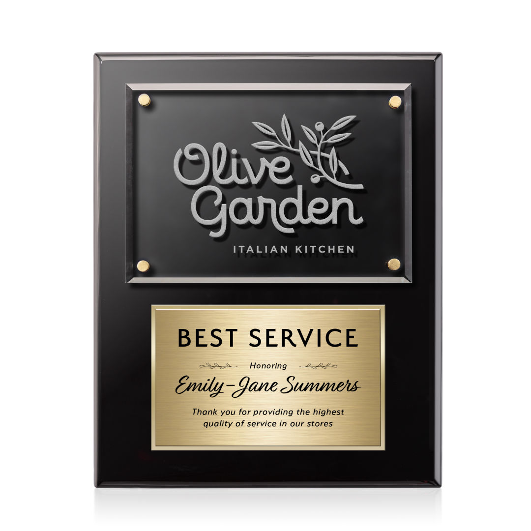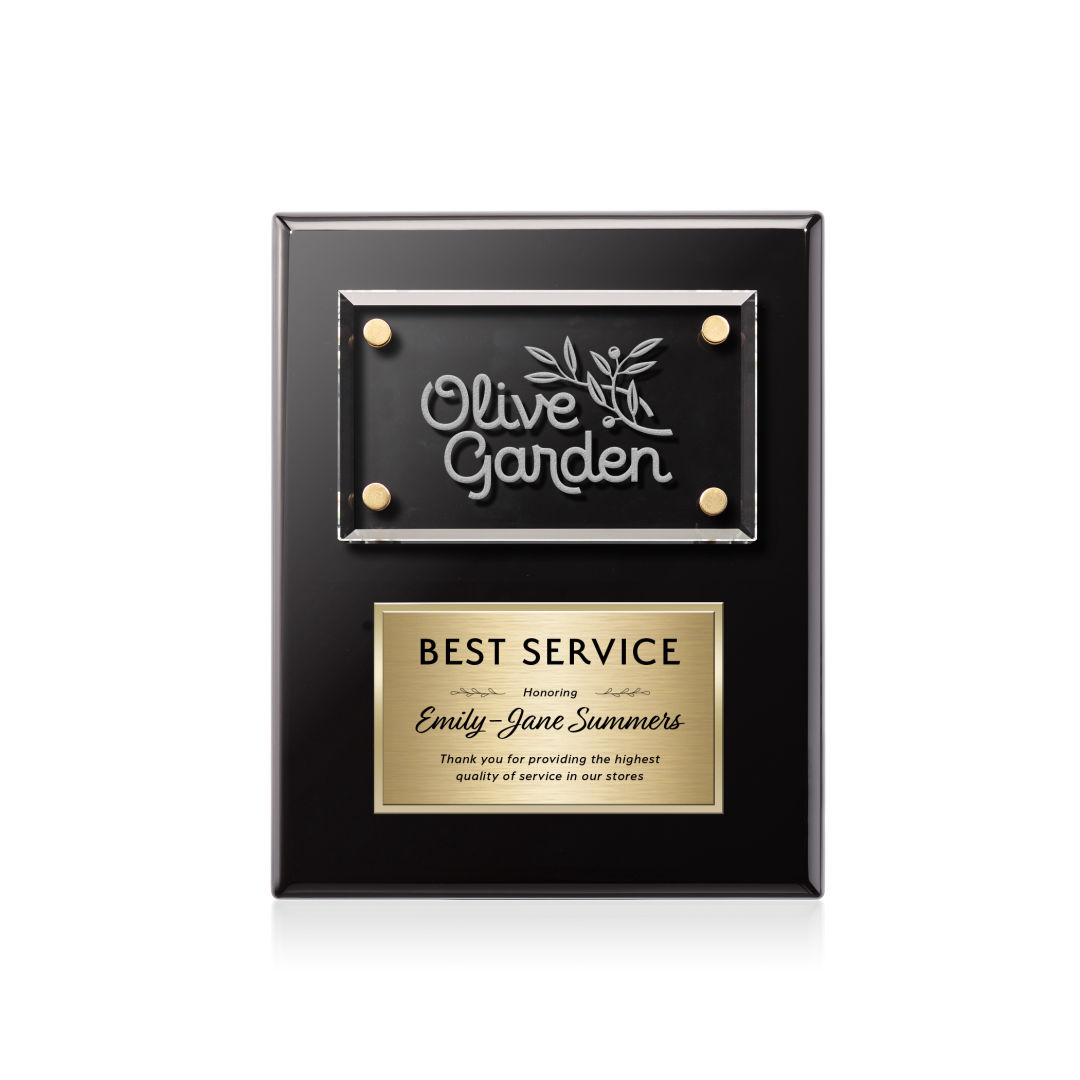 The refined and regal look of the Gossamer Wall Plaque will shine a spotlight on your special achievement. Features beveled Starfire Crystal, hand deep etched and offset from a solid black piano finished backing. Includes a two tone, brushed and polished gold double plate. 7.0″ W x 9.0″ H