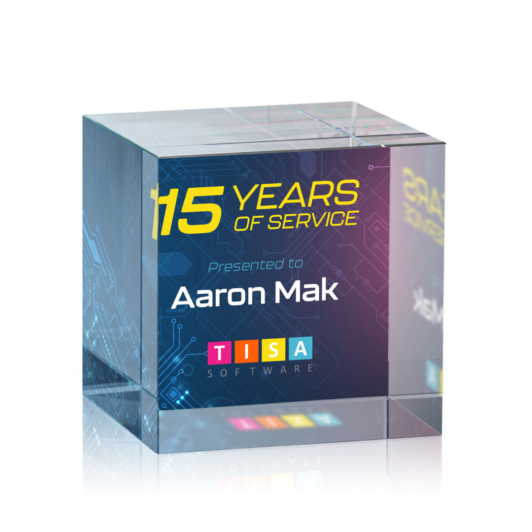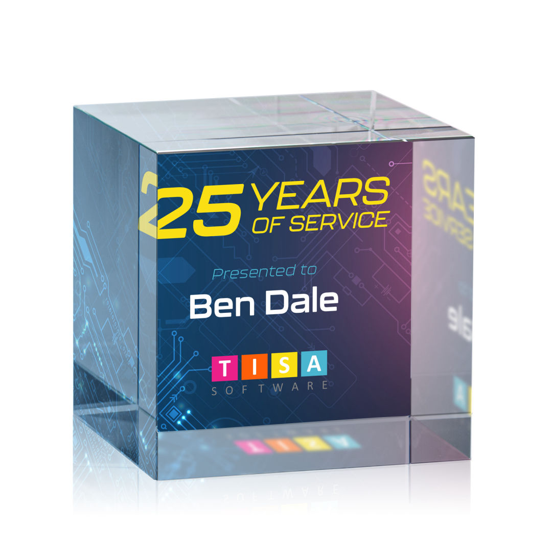 The Granby VividPrint™ Cube is made from solid optical crystal and is available in various sizes. A simple yet striking award or memento for a desktop or shelf. 1.5″ W x 1.5″ H x 1.5″ D